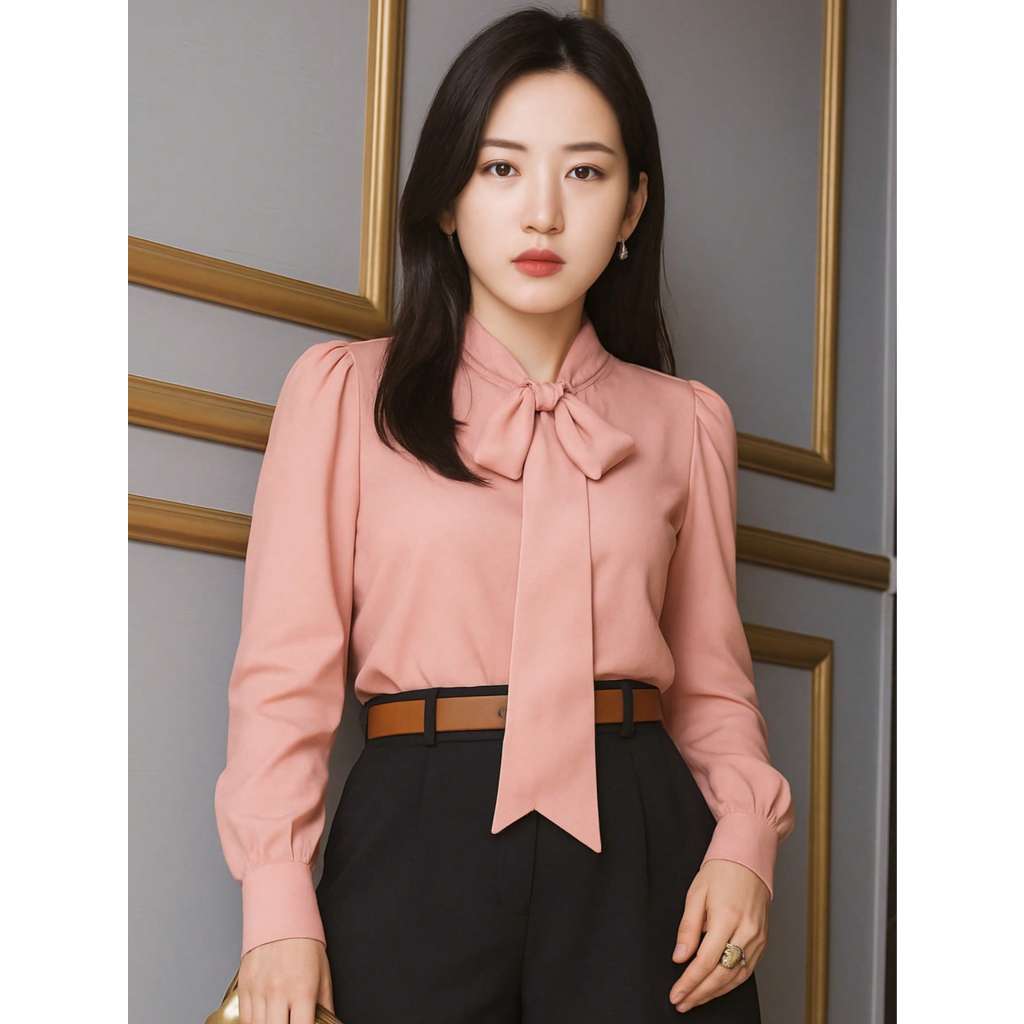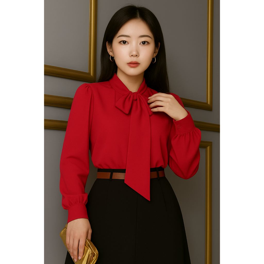 Blusa Camisa Marsala Vinho Bordô Coreana Dorama K-Pop Korea Laço Gravatinha Manga Longa Evangélica Social Trabalho