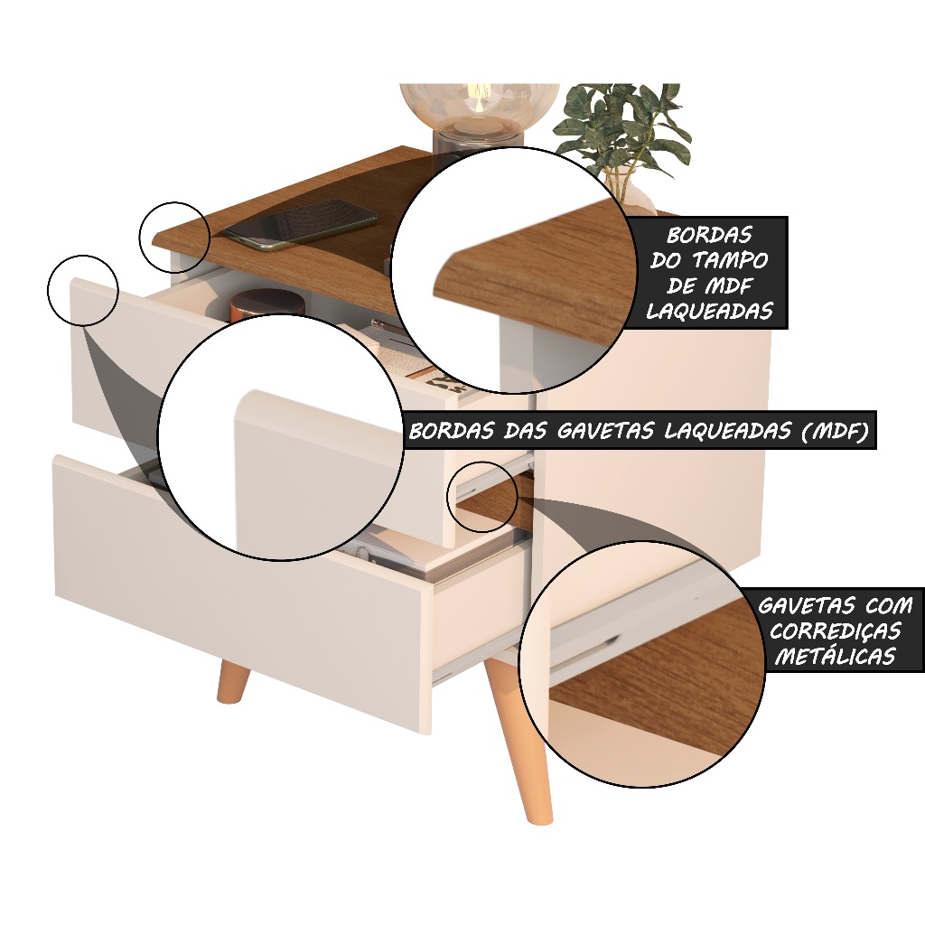 Mesa De Cabeceira Criado Roma Para Quarto 2 Gavetas Pés Palito Retro - Várias Cores
