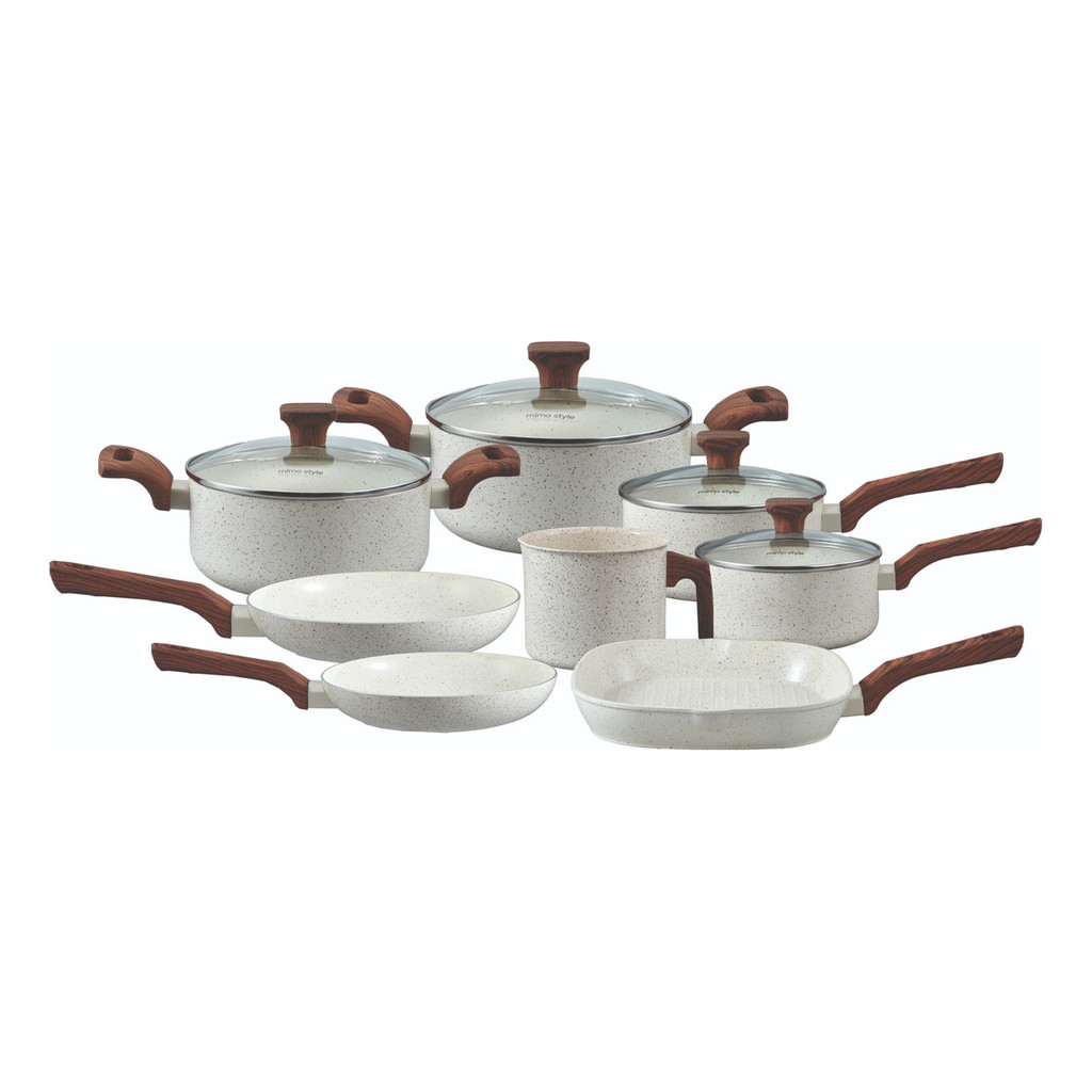Conjunto de 8 Panelas Com Revestimento Ceramico Pratic Cook Marmol Compatível com Fogão por Indução