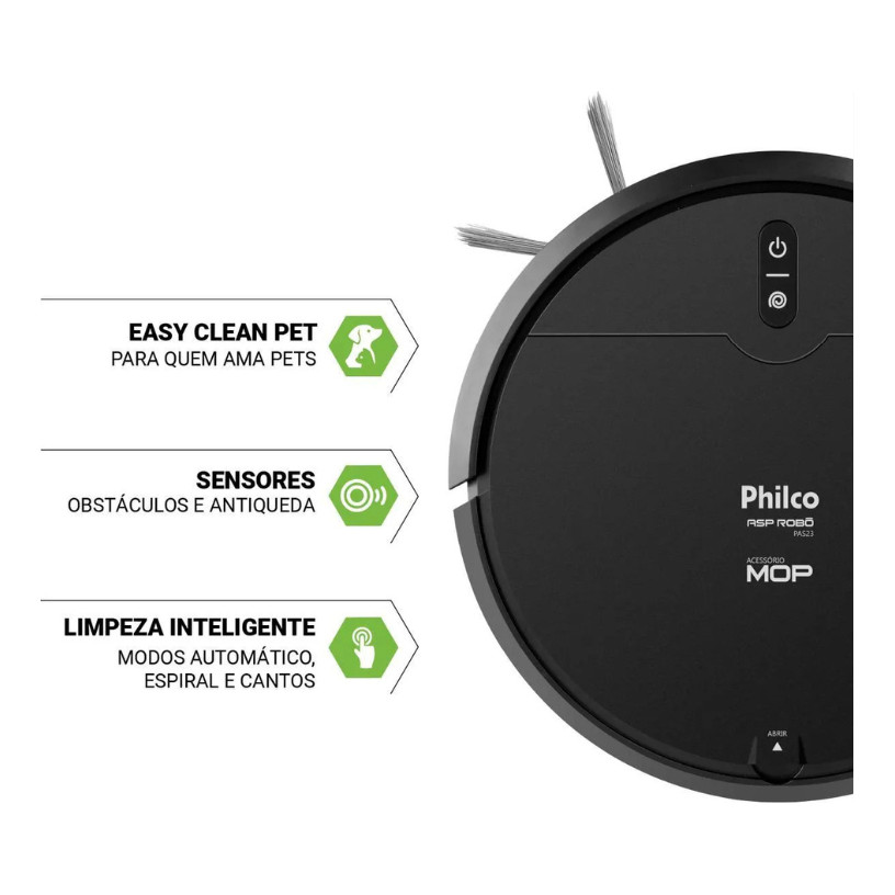 Aspirador De Pó Robô Philco 3 Em 1 Pas23 Com Mop Preto