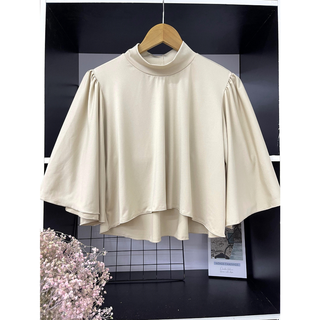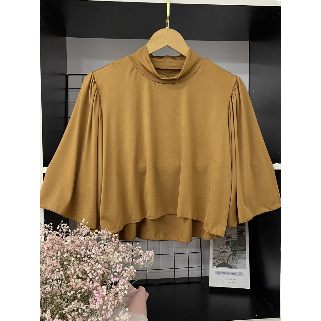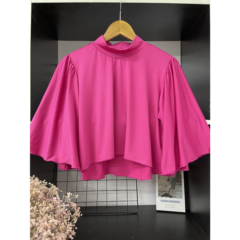 cropped feminina de suplex com gola alto\ manga pricessa