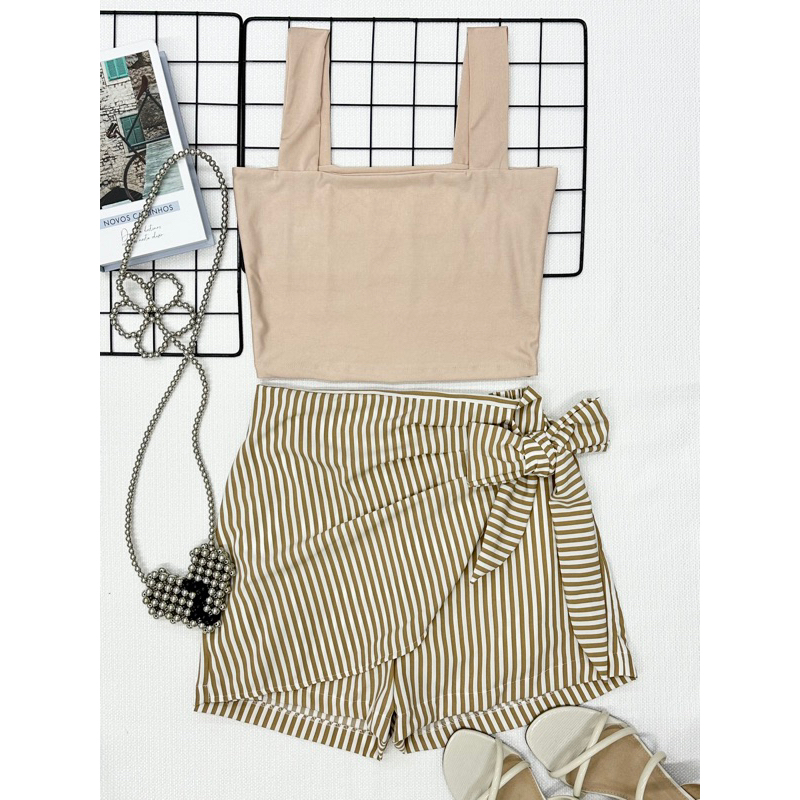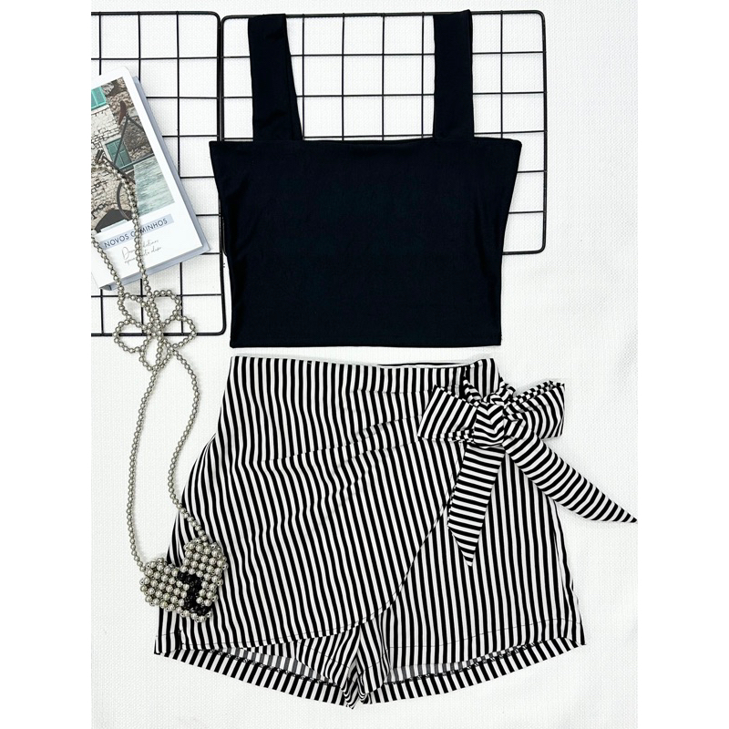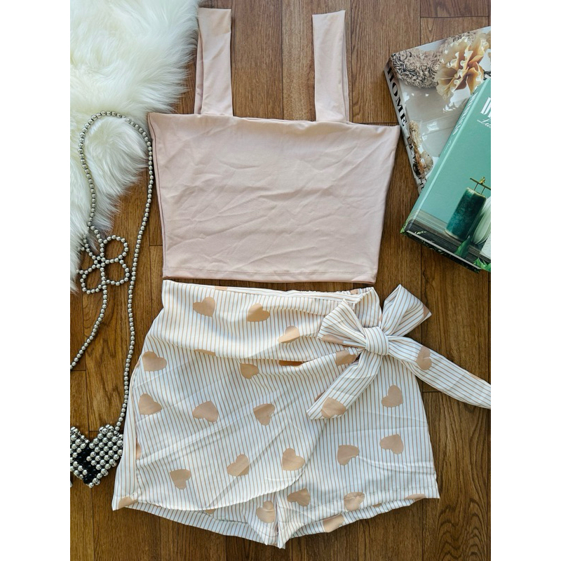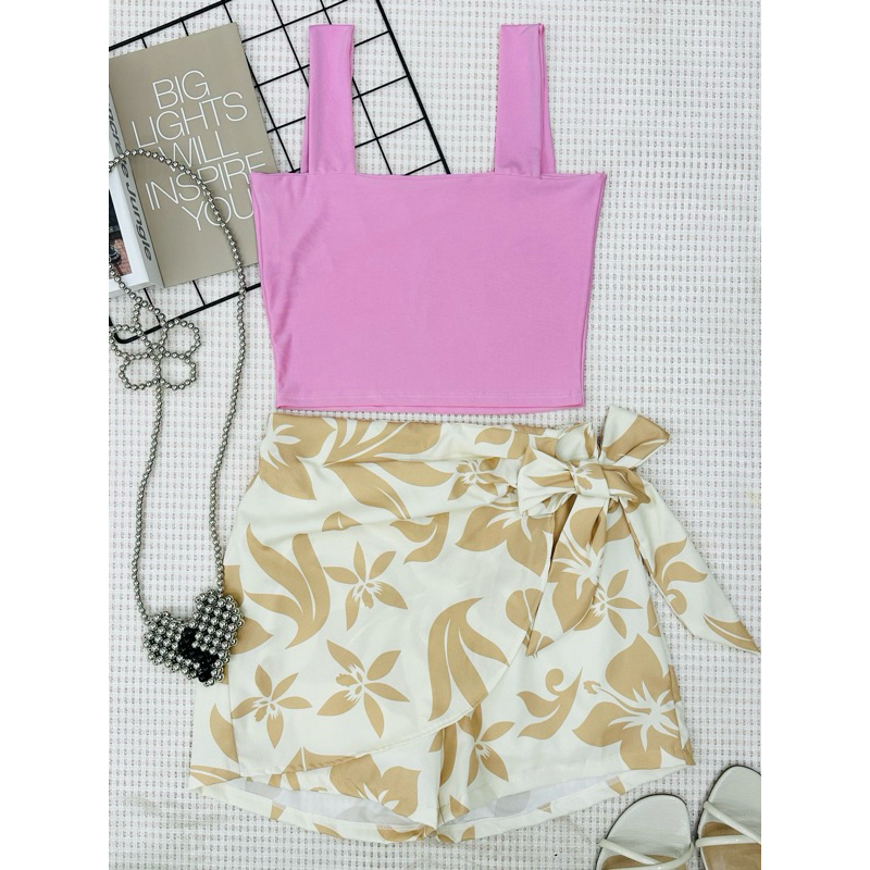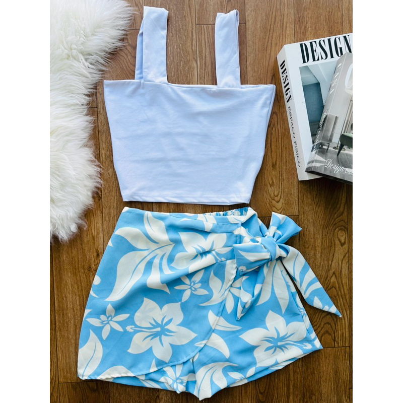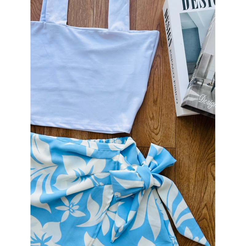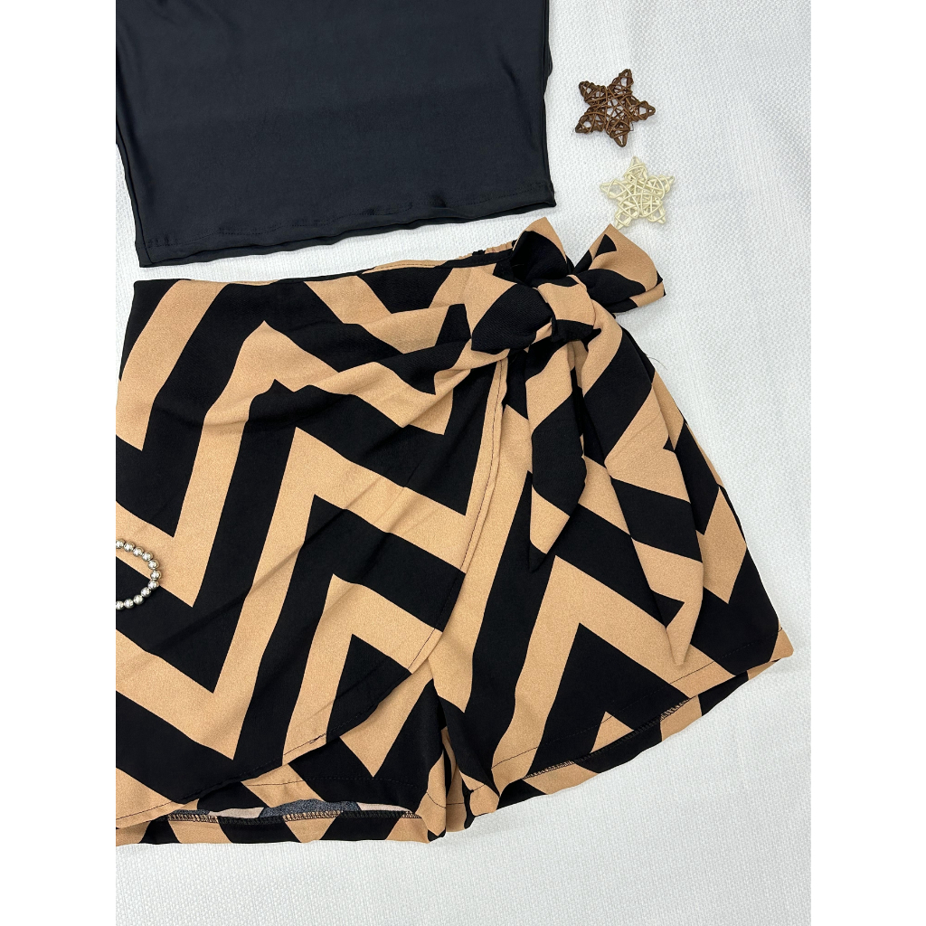conjunto 2pcs de cropped suplex com saia com short estampado182