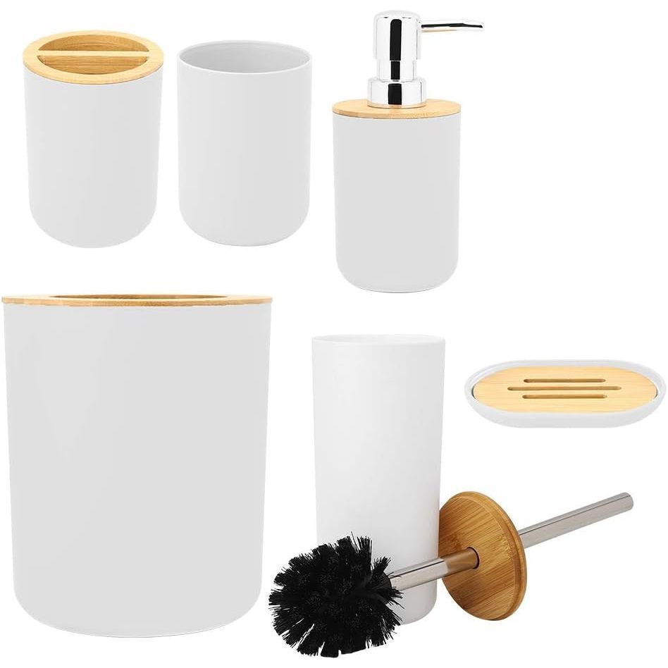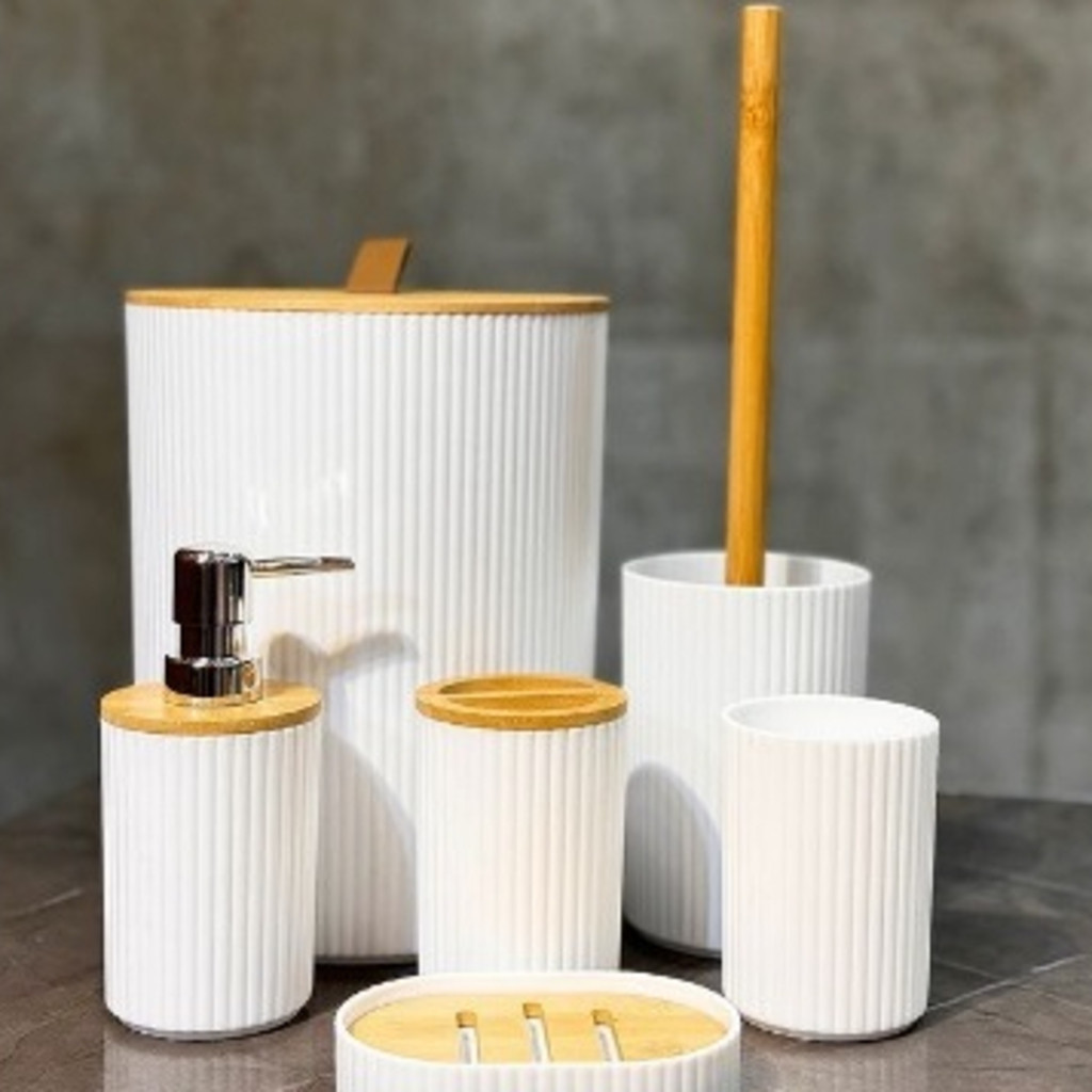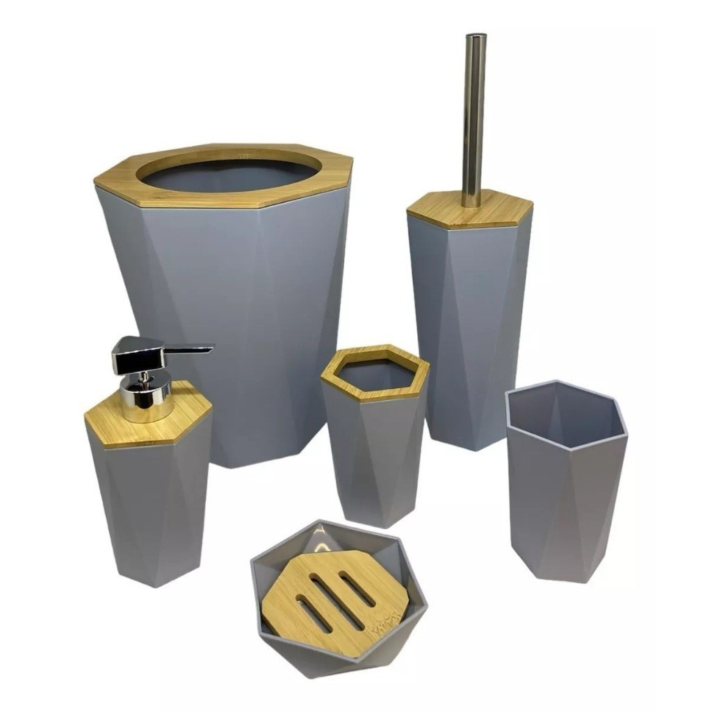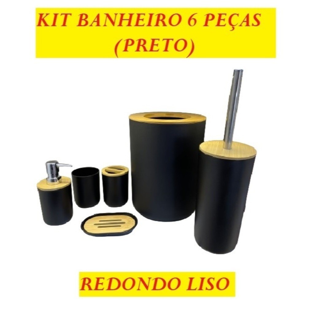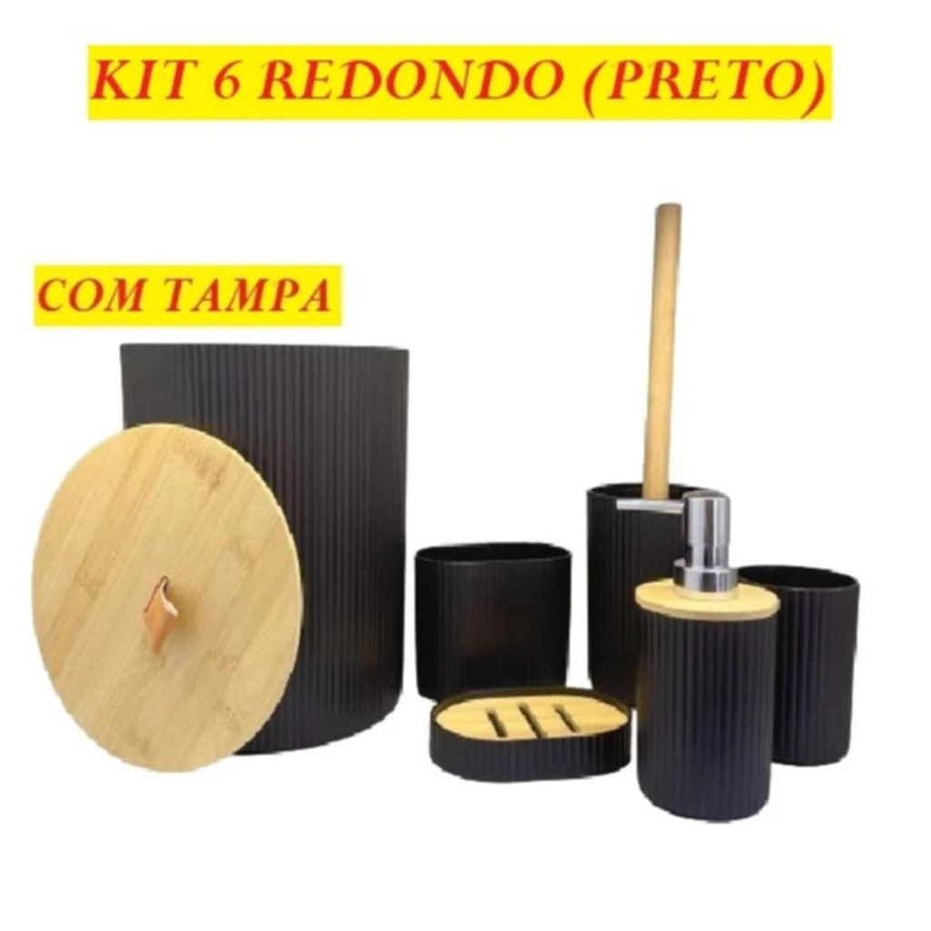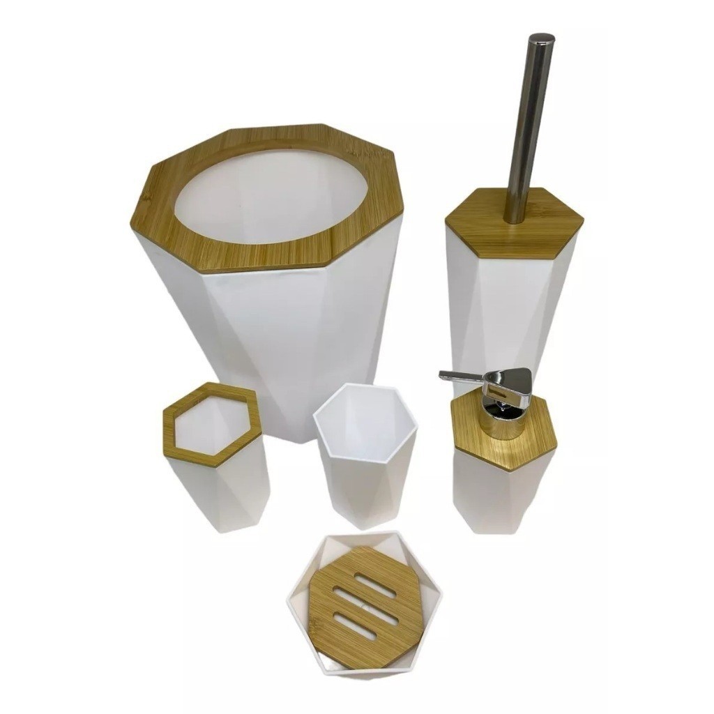Oferta Conjunto 6 Utensilios Para Banheiro Lixeira Saboneteira Porta escova Bambu Lavabo 4 Un