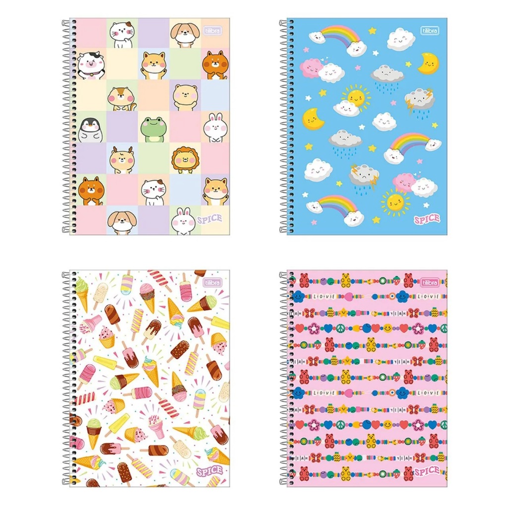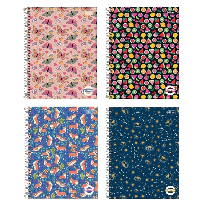 Caderno Tilibra Feminino 1 Matéria 80 Folhas Universitário Capa Dura Espiral Estampado
