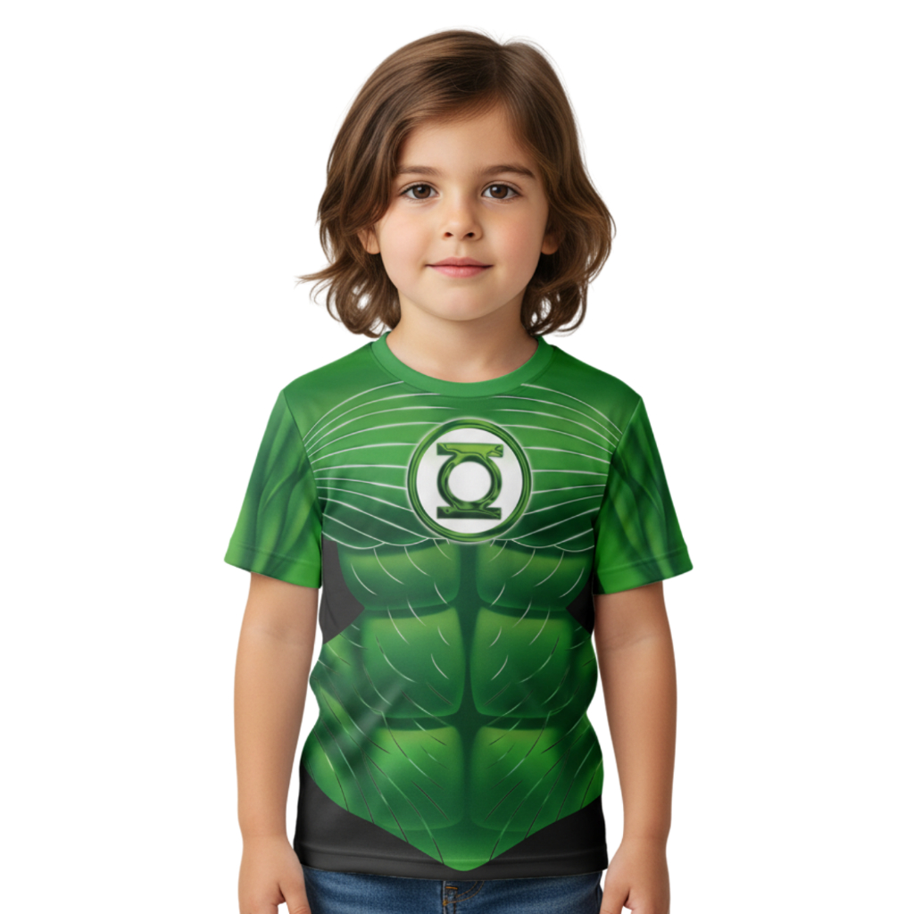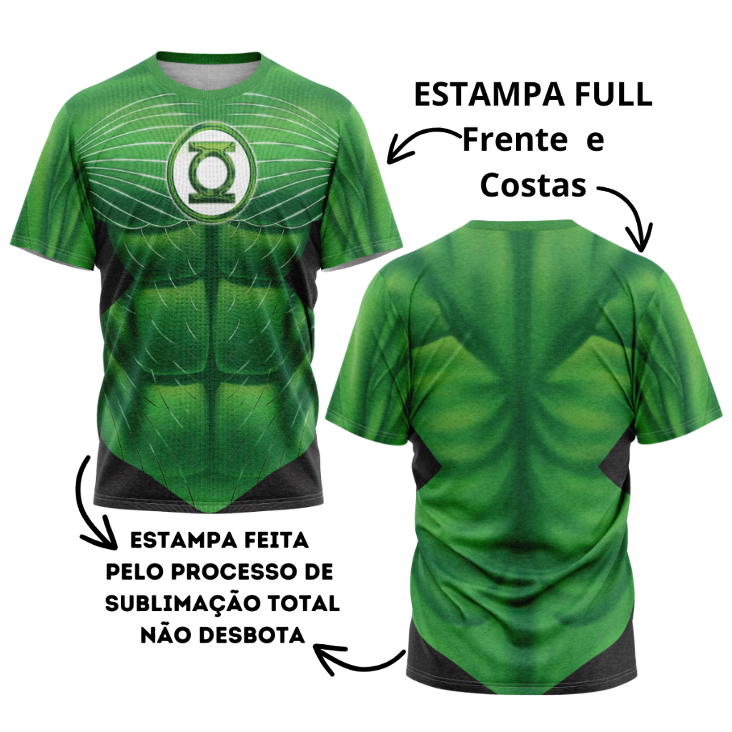 Camiseta Infantil Fantasia Lanterna Verde Dryfit Estampa Total Cosplay