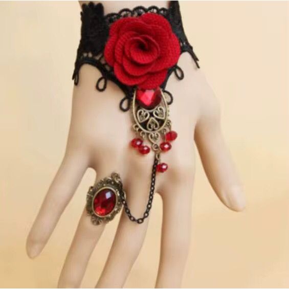 Kit Gargantilha Renda + Pulseira Anel Flor