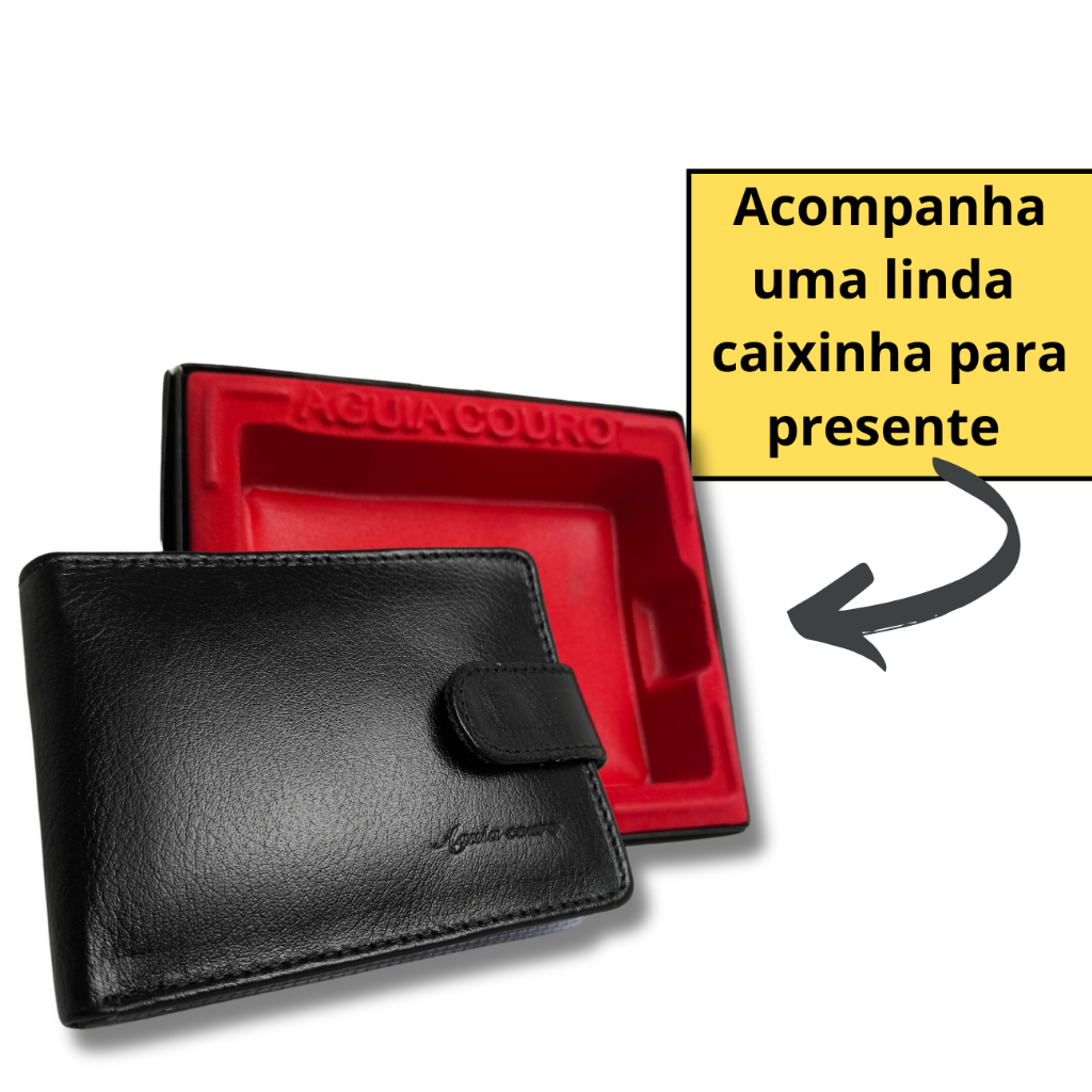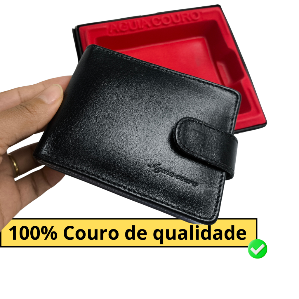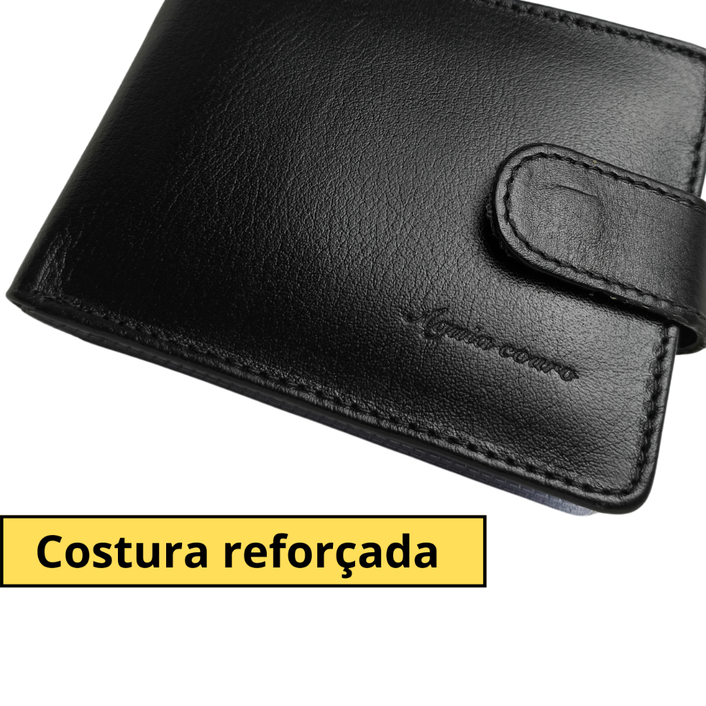 Carteira masculina couro legítimo super completa com fecho de botão couro macio Para Homens Exigentes