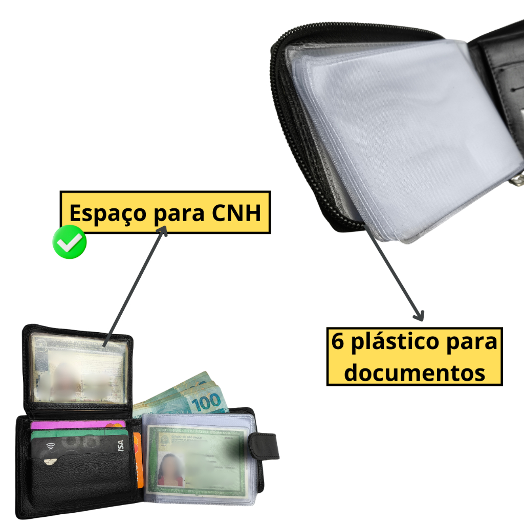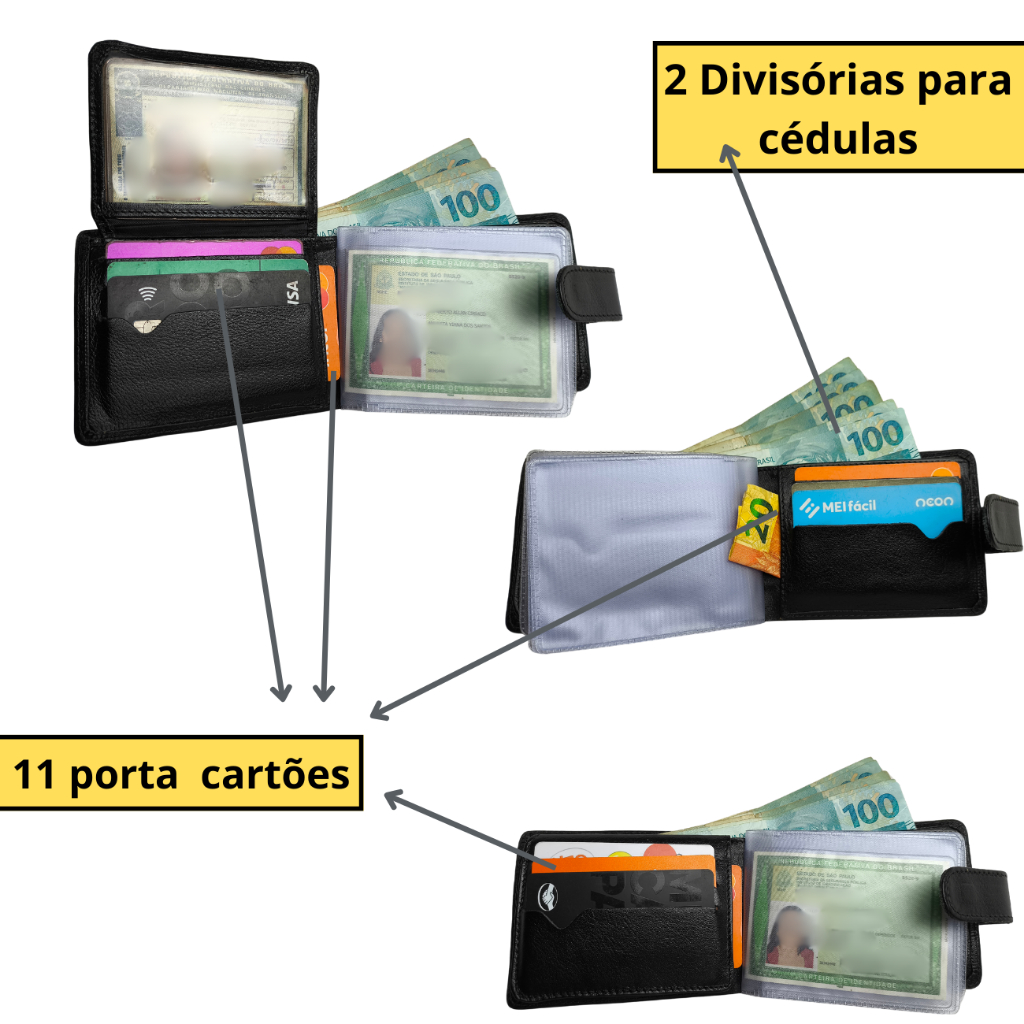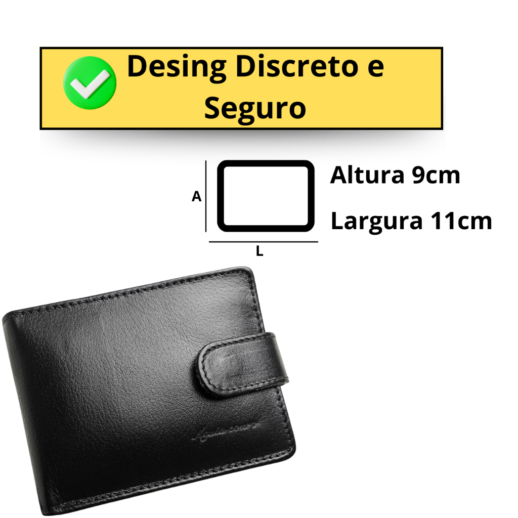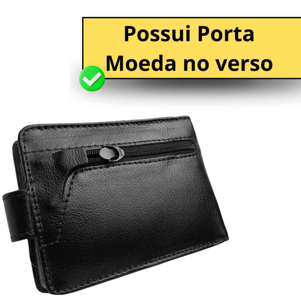 Carteira masculina couro legítimo super completa com fecho de botão couro macio Para Homens Exigentes