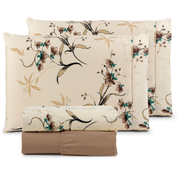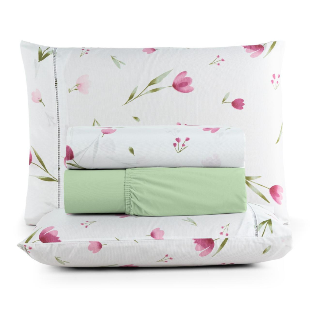 Jogo Lençol King 4 Peças Estampado 180 Fios Ponto Palito 100% Algodão