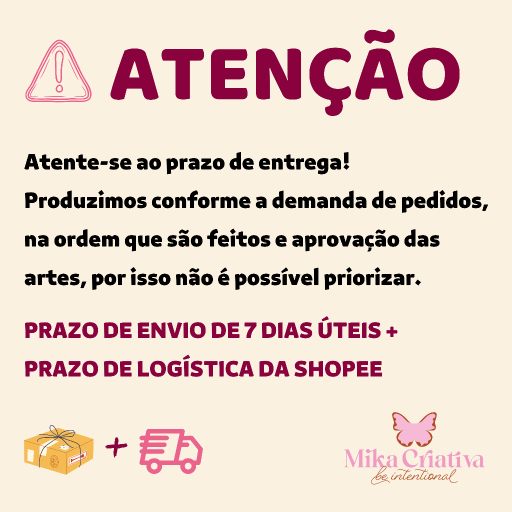 Sob encomenda: envio ap ós 7 dias da compra