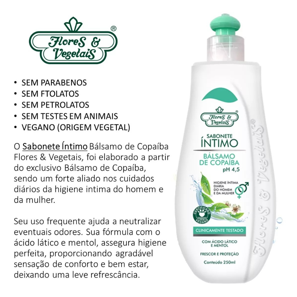 2 Sabonete Íntimo Bálsamo De Copaíba Flores E Vegetais 250ml