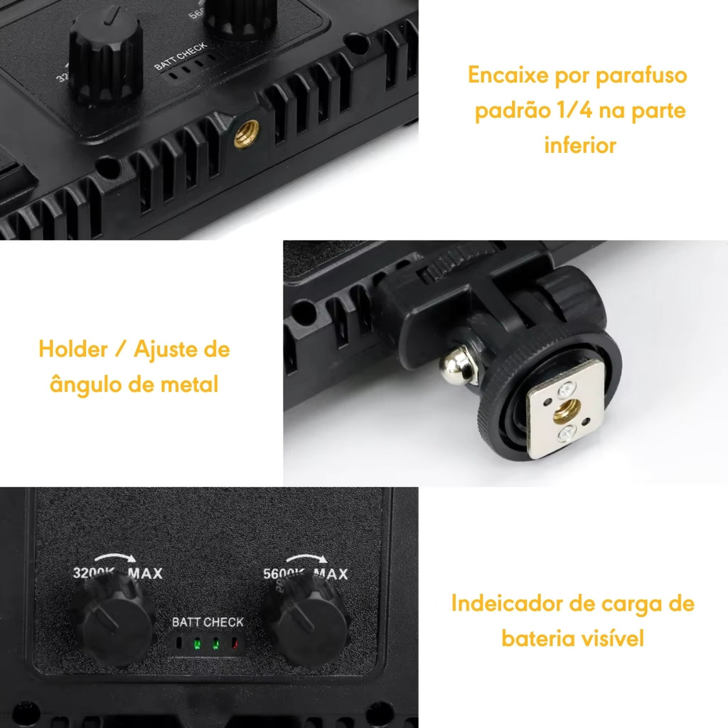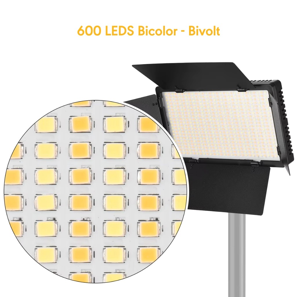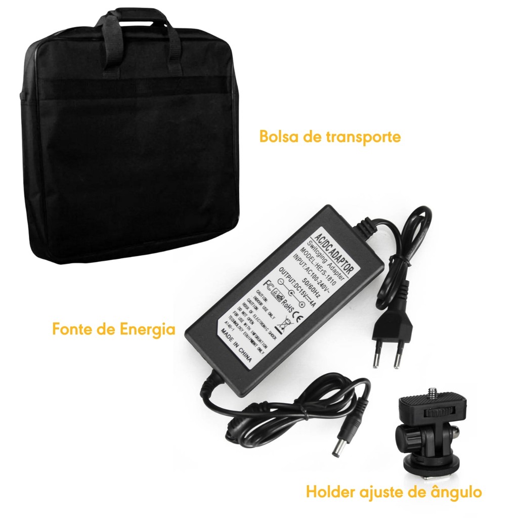 Painel Iluminador PRO LED 600 Bicolor 45W com Tripé, Holder e Fonte Bivolt Tpfoto