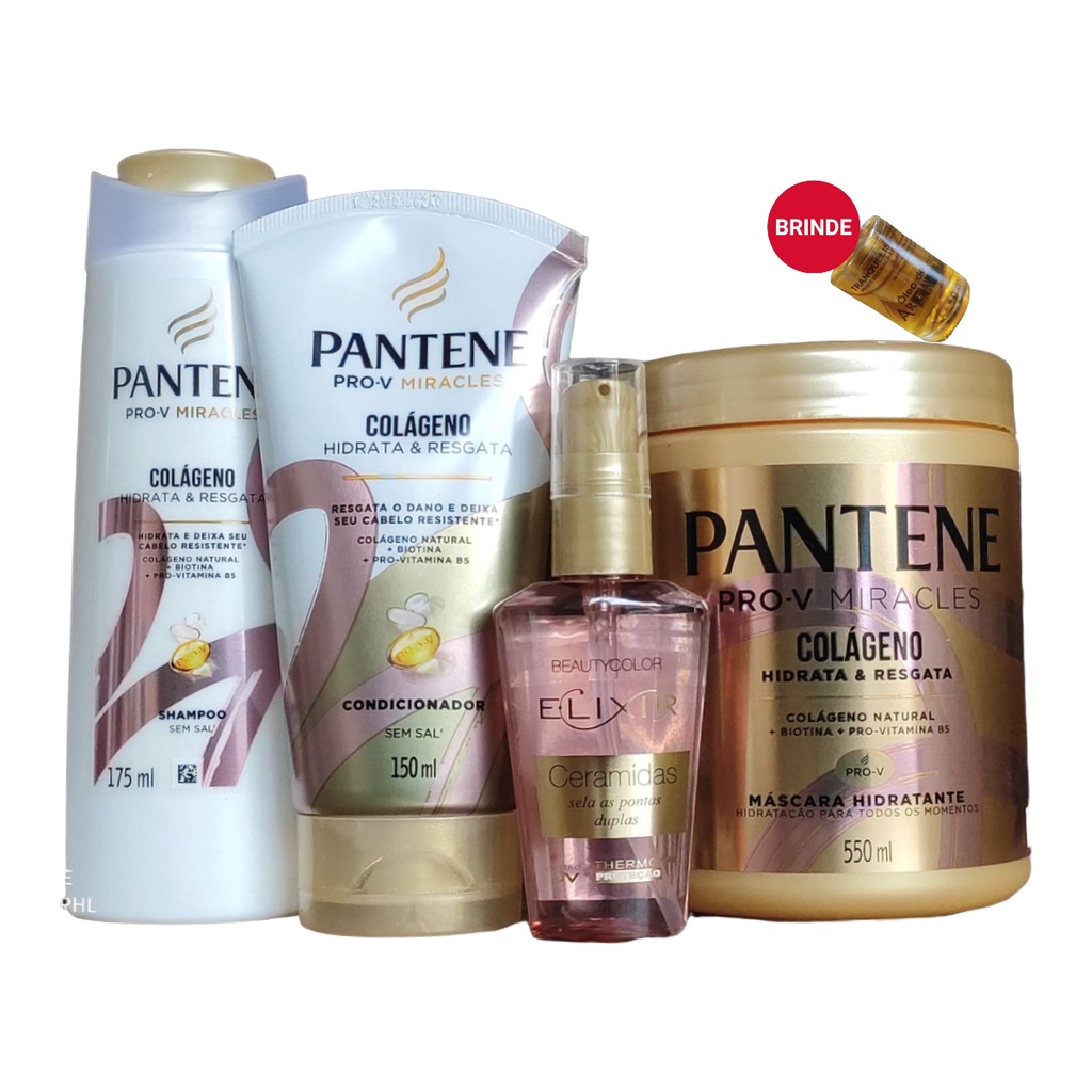 Kit Sh + Cond + Masc 550ml Linha Pantene Colageno + oleo Ceramidas + brinde promocional