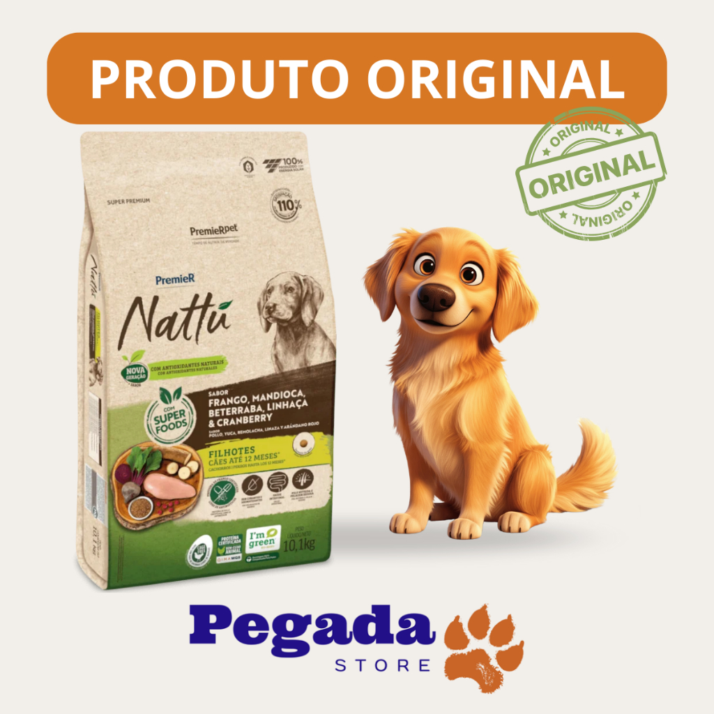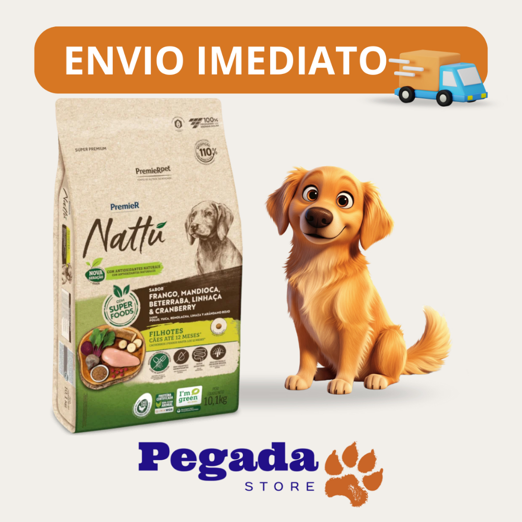 RAÇÃO PREMIER NATTU FILHOTE RAÇA MEDIA E GRANDE MANDIOCA 10KG