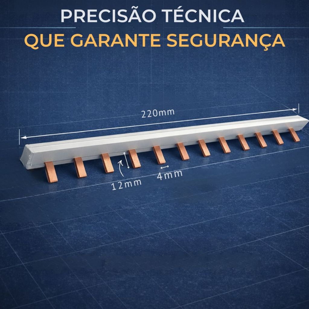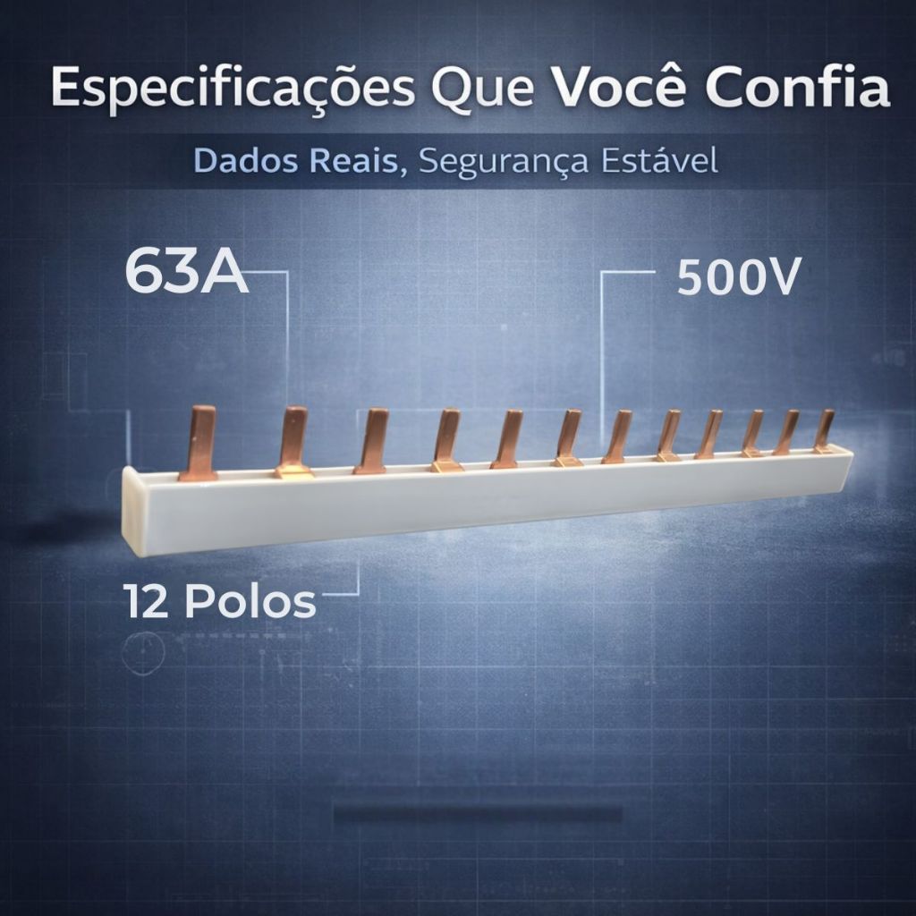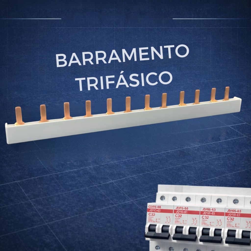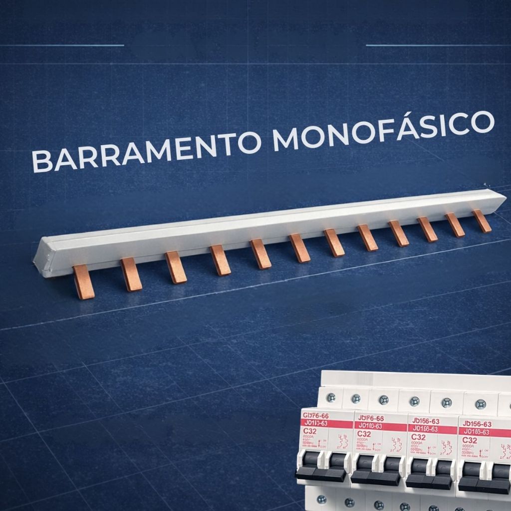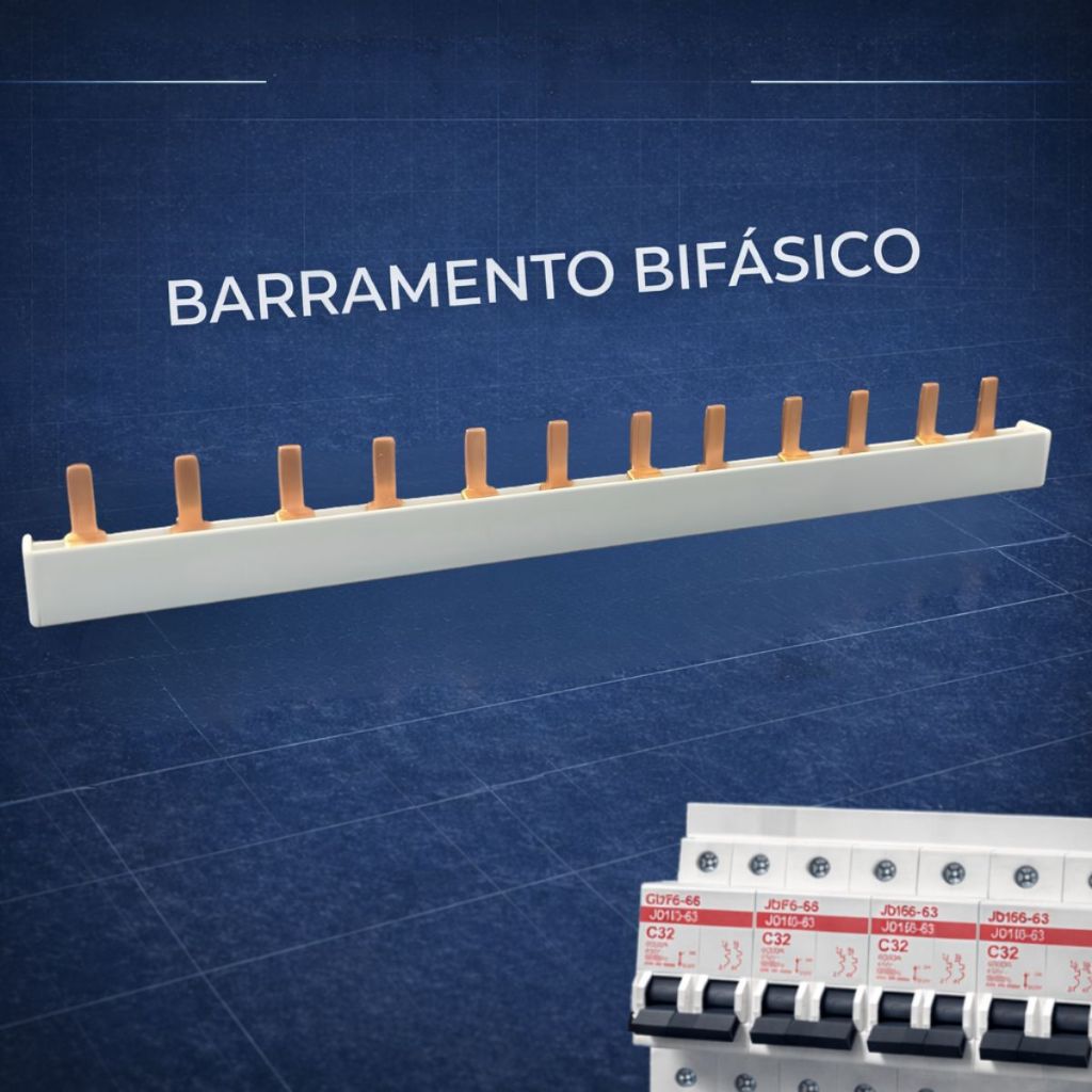 Barramento Pente 12P bifásico monofasico trifasico 63A Disjuntor Din bipolar conector generico e isolador