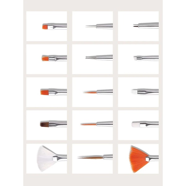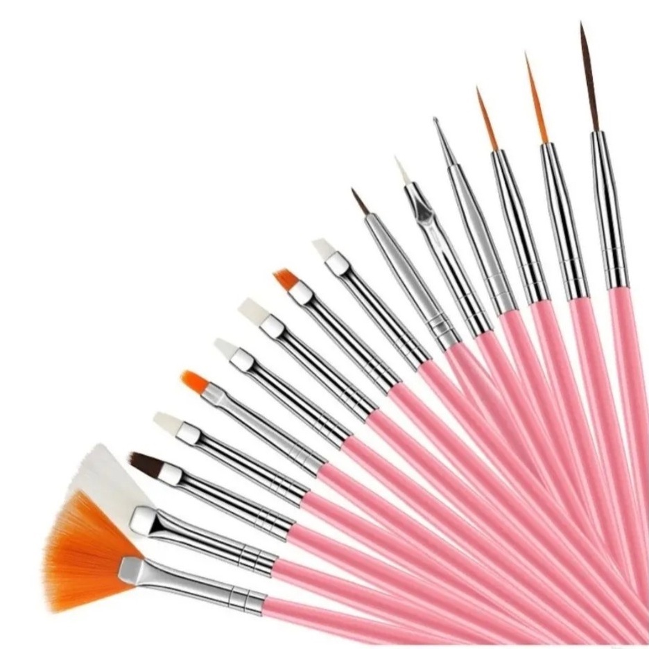 Kit Com 15 Pincéis Para Decoração De Unhas - Nail Art