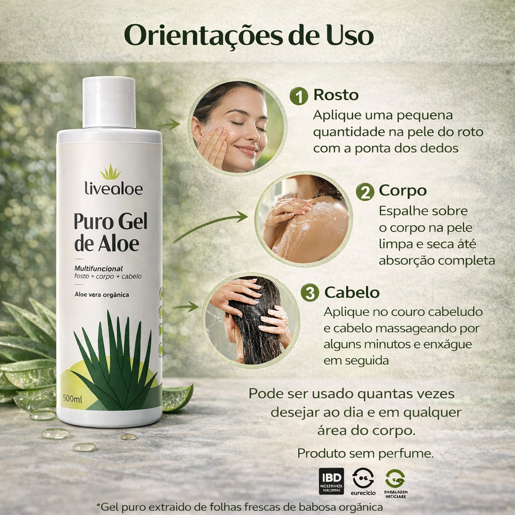 Gel Aloe Vera Organico Babosa Puro LIVEALOE 60ml/ 210ml/ 500ml/ 120ml - Testado Dermatologicamente