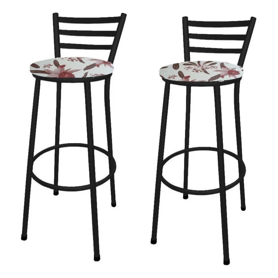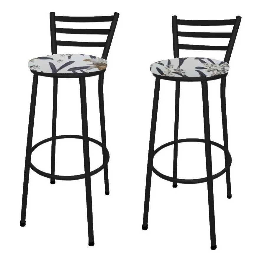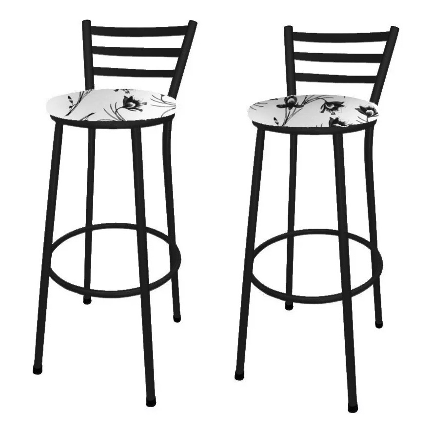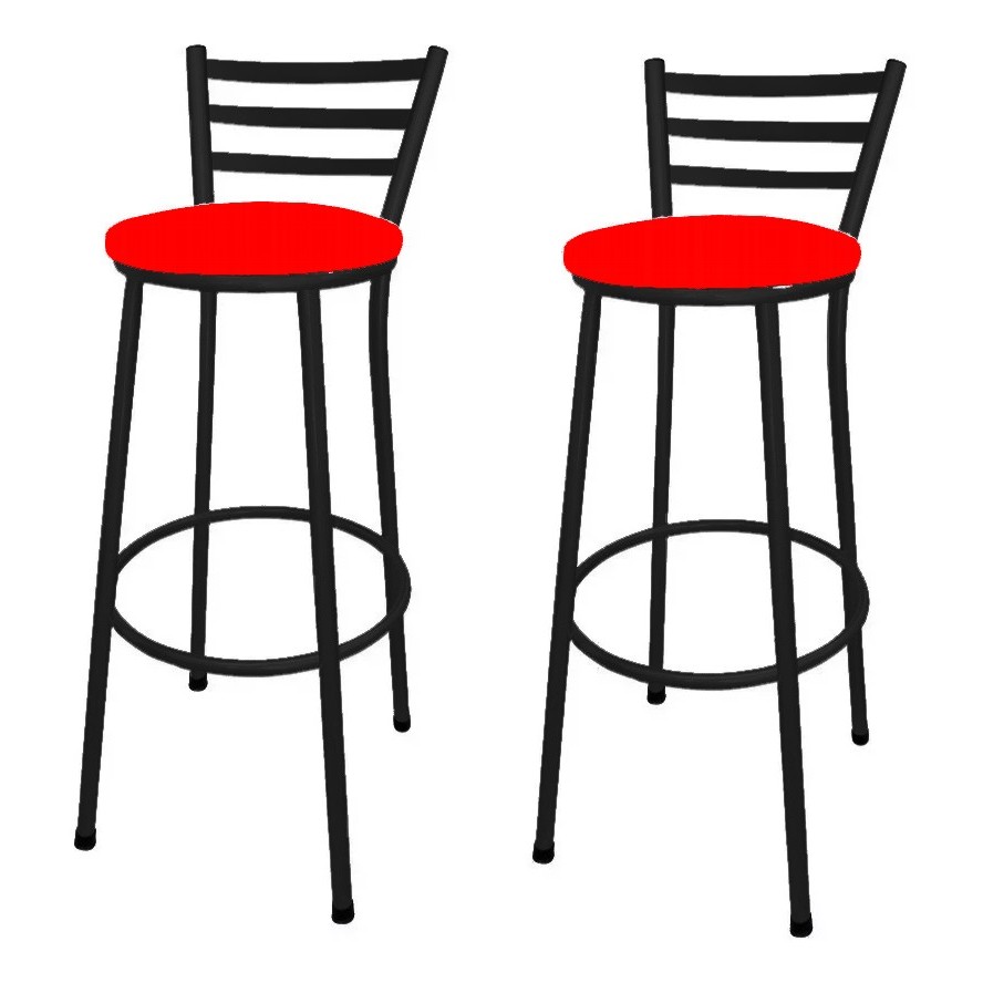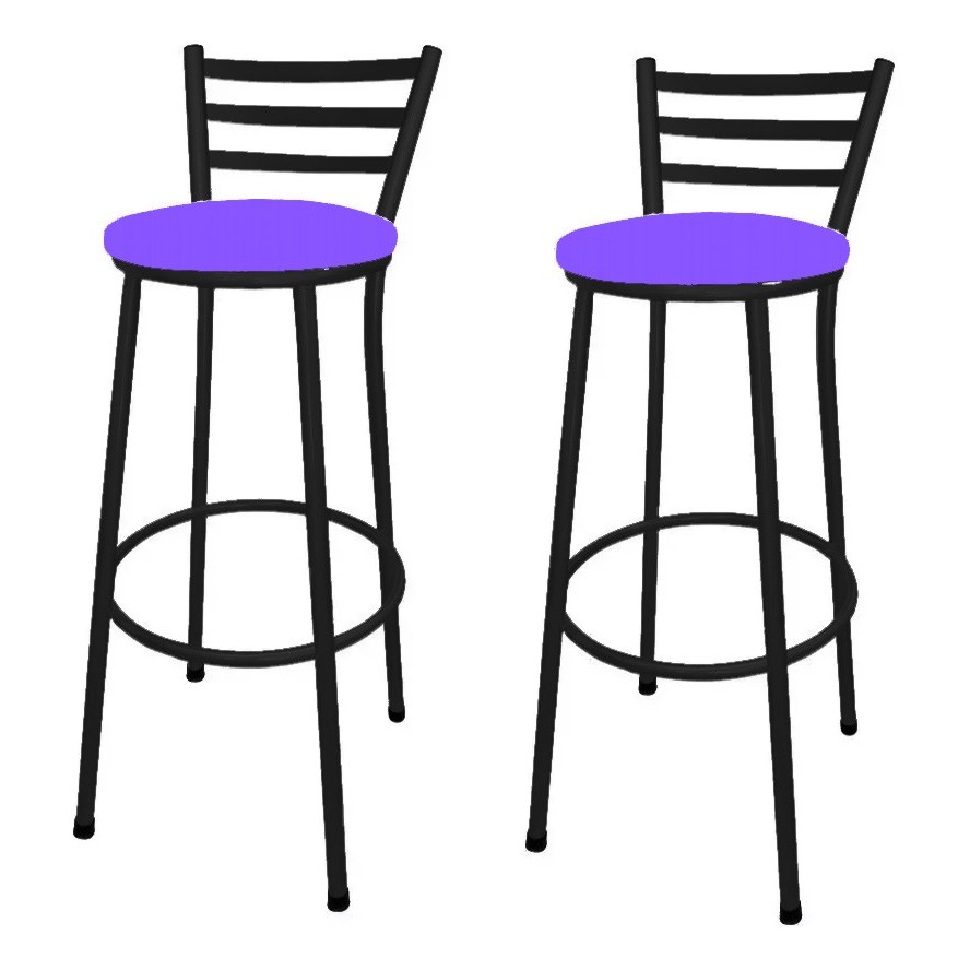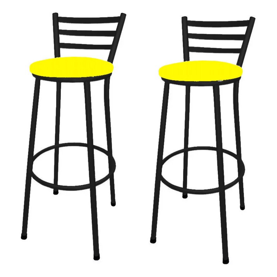 Kit 2 Banco Banqueta Alta Preto Liso C/ Encosto Chapa