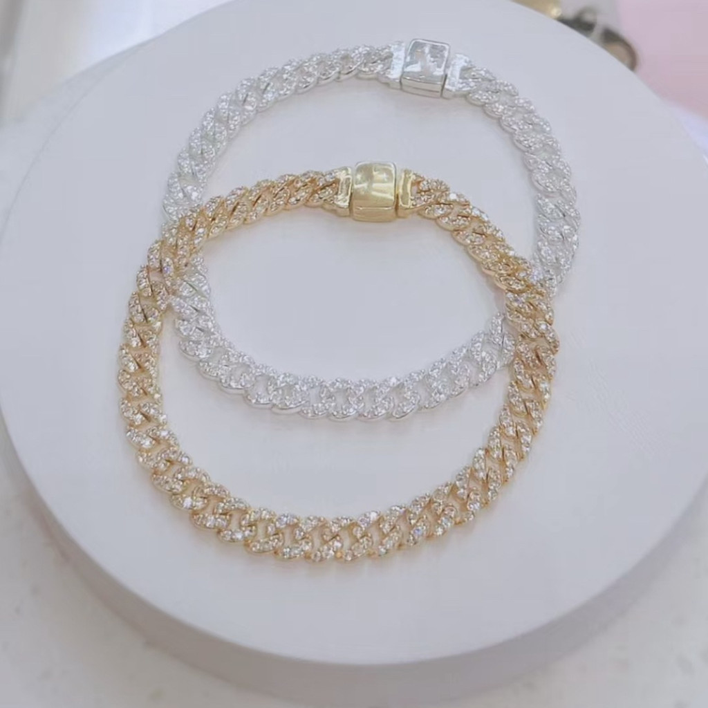 RODREASON Joias Para Mulheres Pulseira Cubana Luxo 14K Ouro Dopamina Cristal Charme Corrente