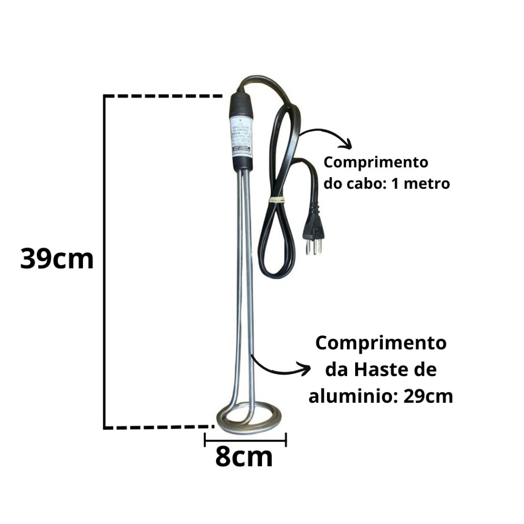 Ebulidor Eletrico, Mergulhão, Rabo Quente, 2000W 127 OU 220V Ferve água Rápido.