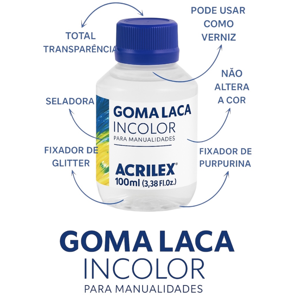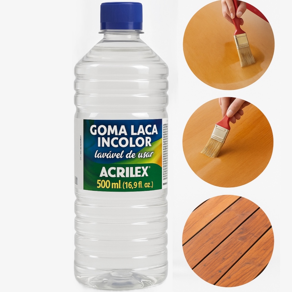 Goma Laca Incolor Acrilex 100ml Selador Madeira MDF Papel Gesso Couro Acabamento Brilhante