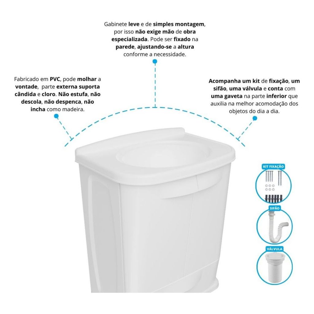 Gabinete Plástico Com Lavatório Armário Banheiro Cores Gab Fit GAB5 Astra