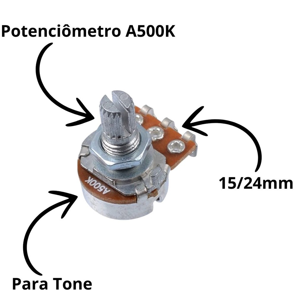 Potenciômetro A500k Para Tone 15/24mm Guitarra E Contrabaixo