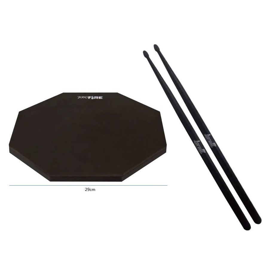 Pad Estudo Treino Praticável Bateria 10" + Par Baqueta Fibra