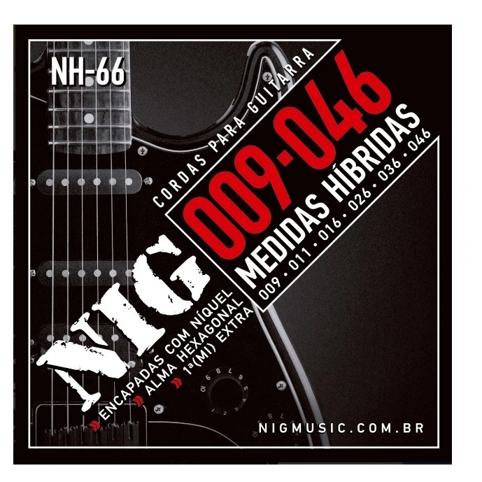 Encordoamento Para Guitarra NIG .009 Híbridas NH66 Cordas com 2 Palhetas