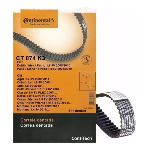 KIT CORREIA DENTADA E TENSOR PALIO WEEKEND 1.8 8V 2005 / 2010 COM HNBR ORIGINAL CONTINENTAL