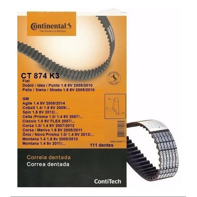 KIT CORREIA DENTADA E TENSOR ÀGILE 1.4 2009 / 2014 COM HNBR ORIGINAL CONTINENTAL