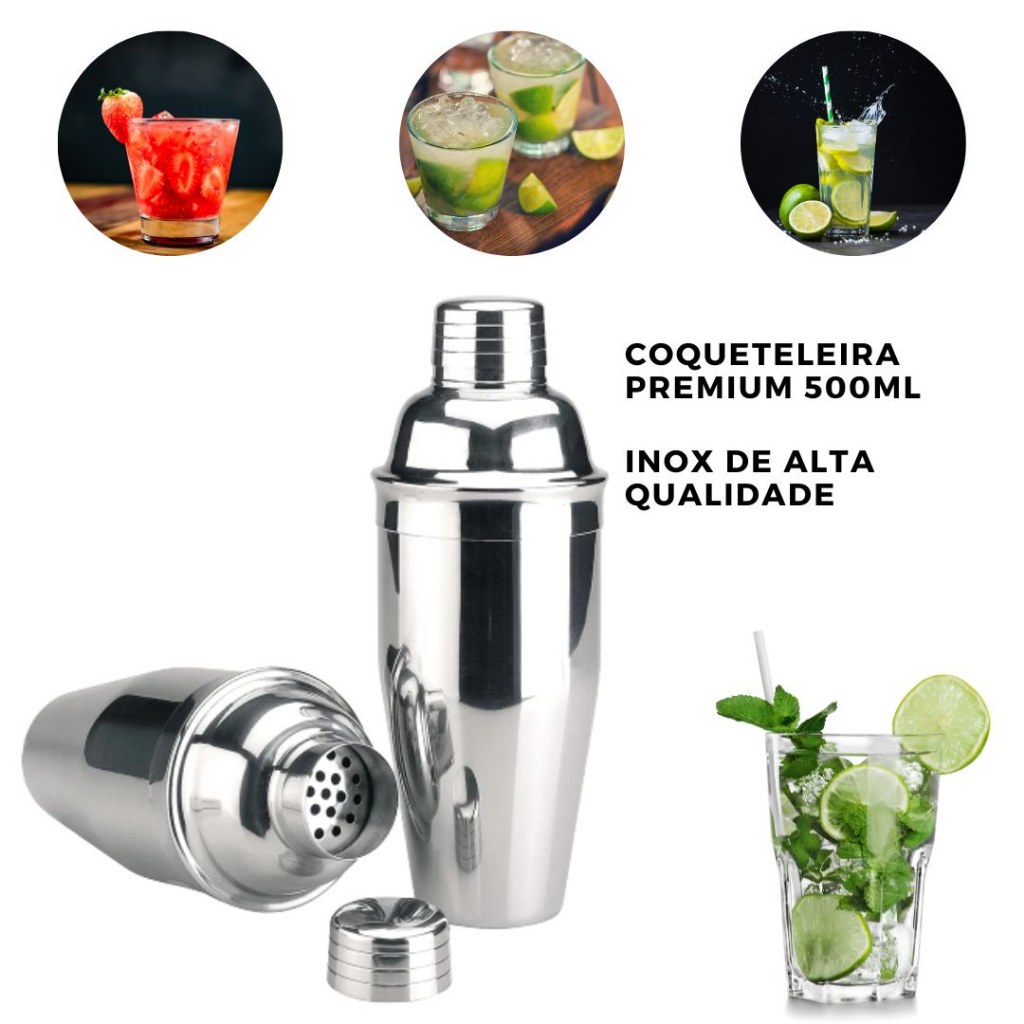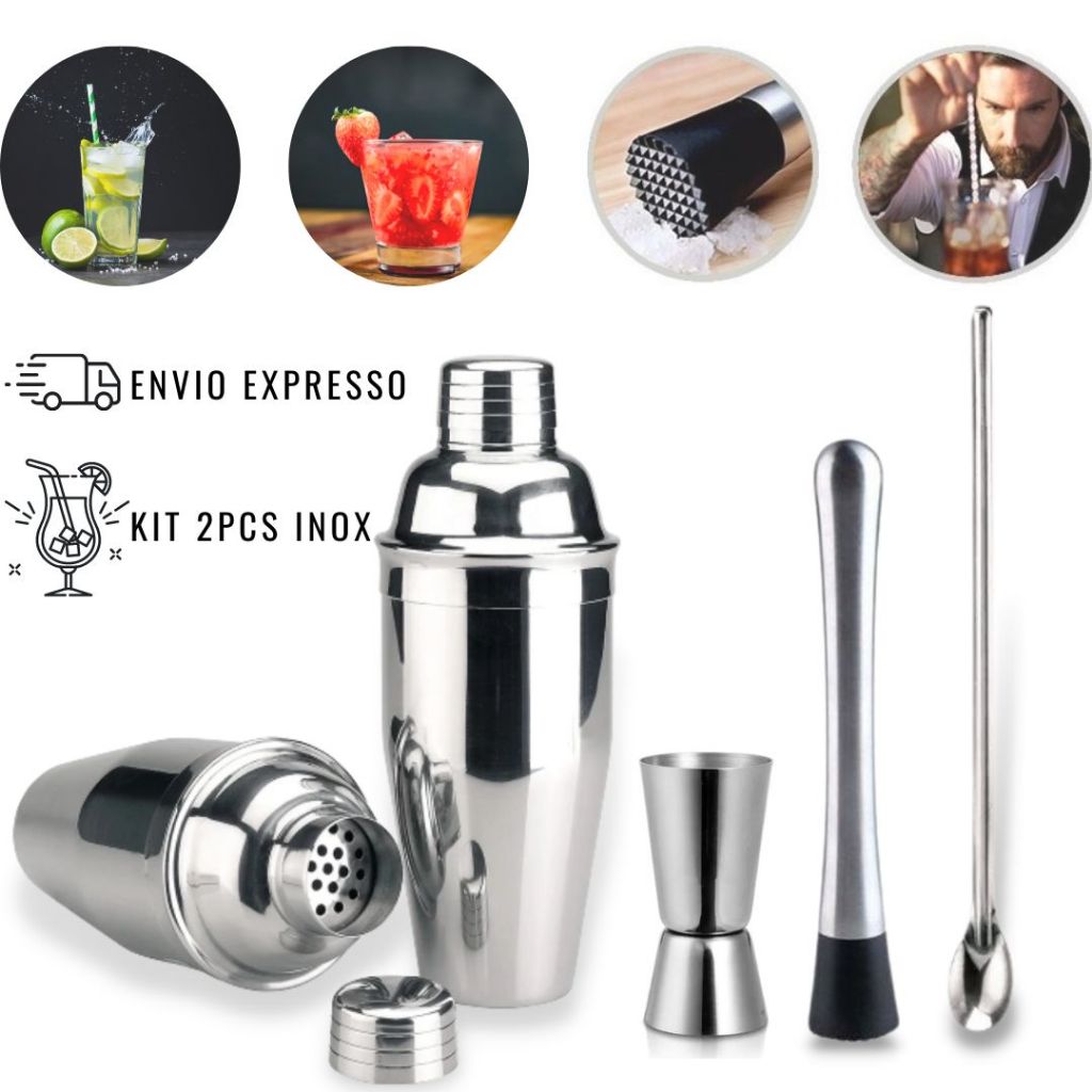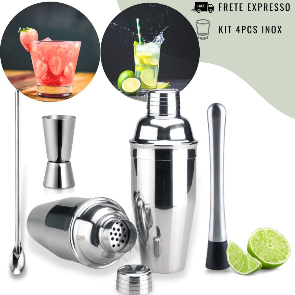 Kit Caipirinha 4 peças Inox Barman Coqueteleira Profissional Drinks
