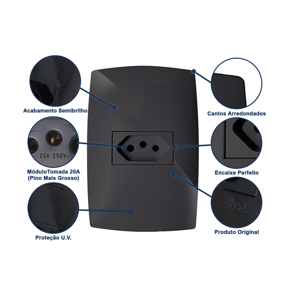 Cj Tomada 20a Horizontal 4x2 - Blux Home Grafite - MT-BH10456-6GF