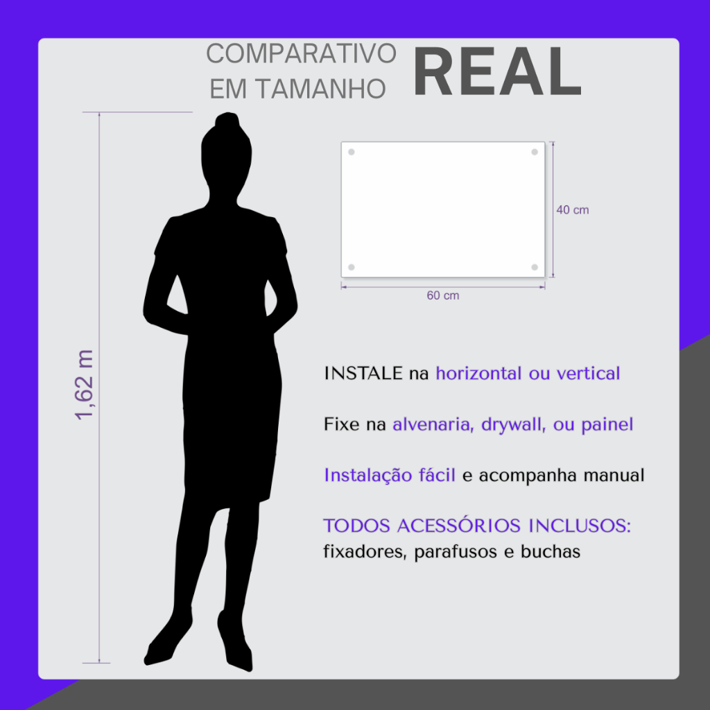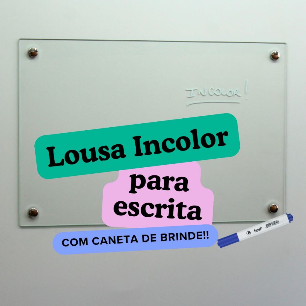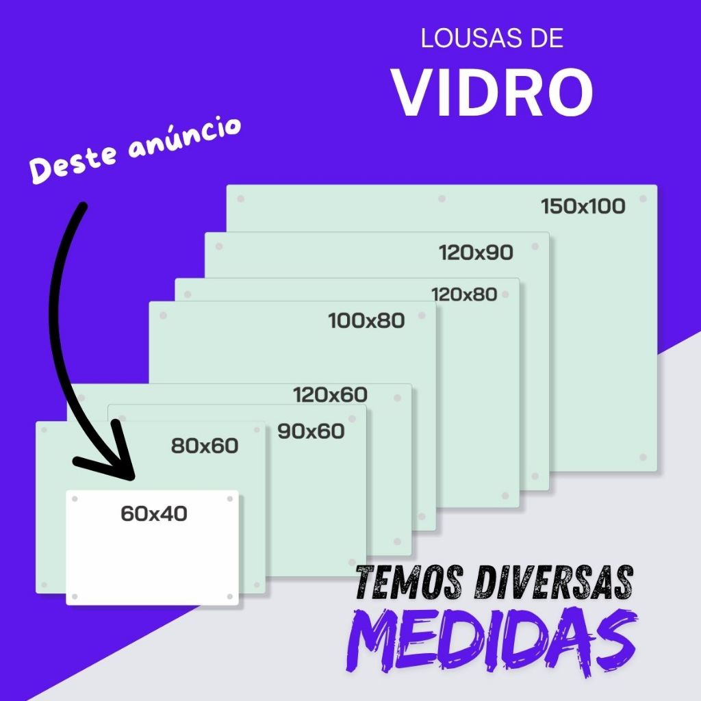 Lousa de vidro 60x40 cm para escrita, lousa para home office, escola, escritórios, empresas