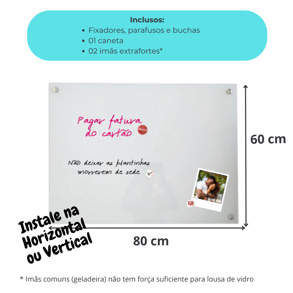 Quadro branco de vidro escrita e imãs 80x60 cm lousa de vidro magnética lousa branca quadro branco