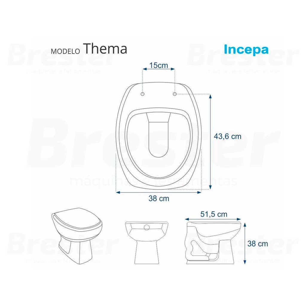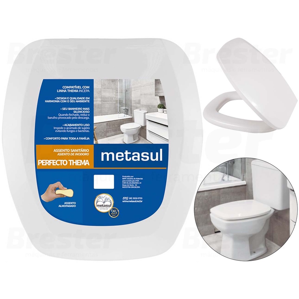 Assento Sanitário Almofadado Retangular Metasul Original 1.6gpf/6lpf Tampa Vaso Thema Valentina