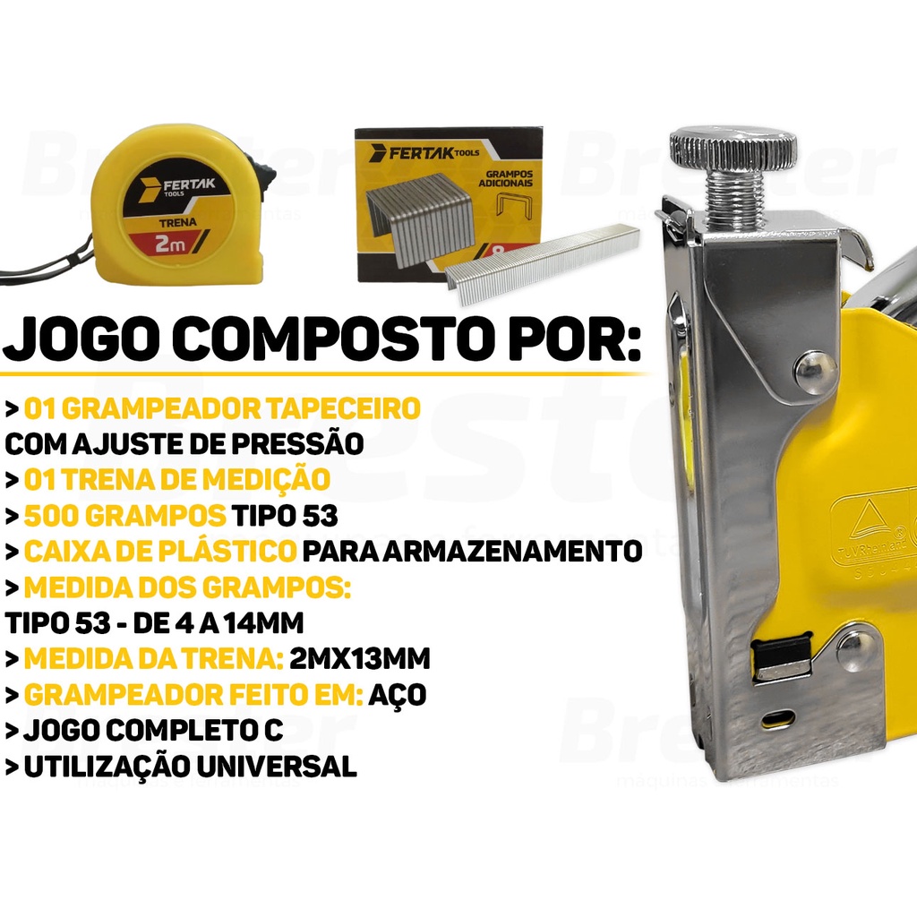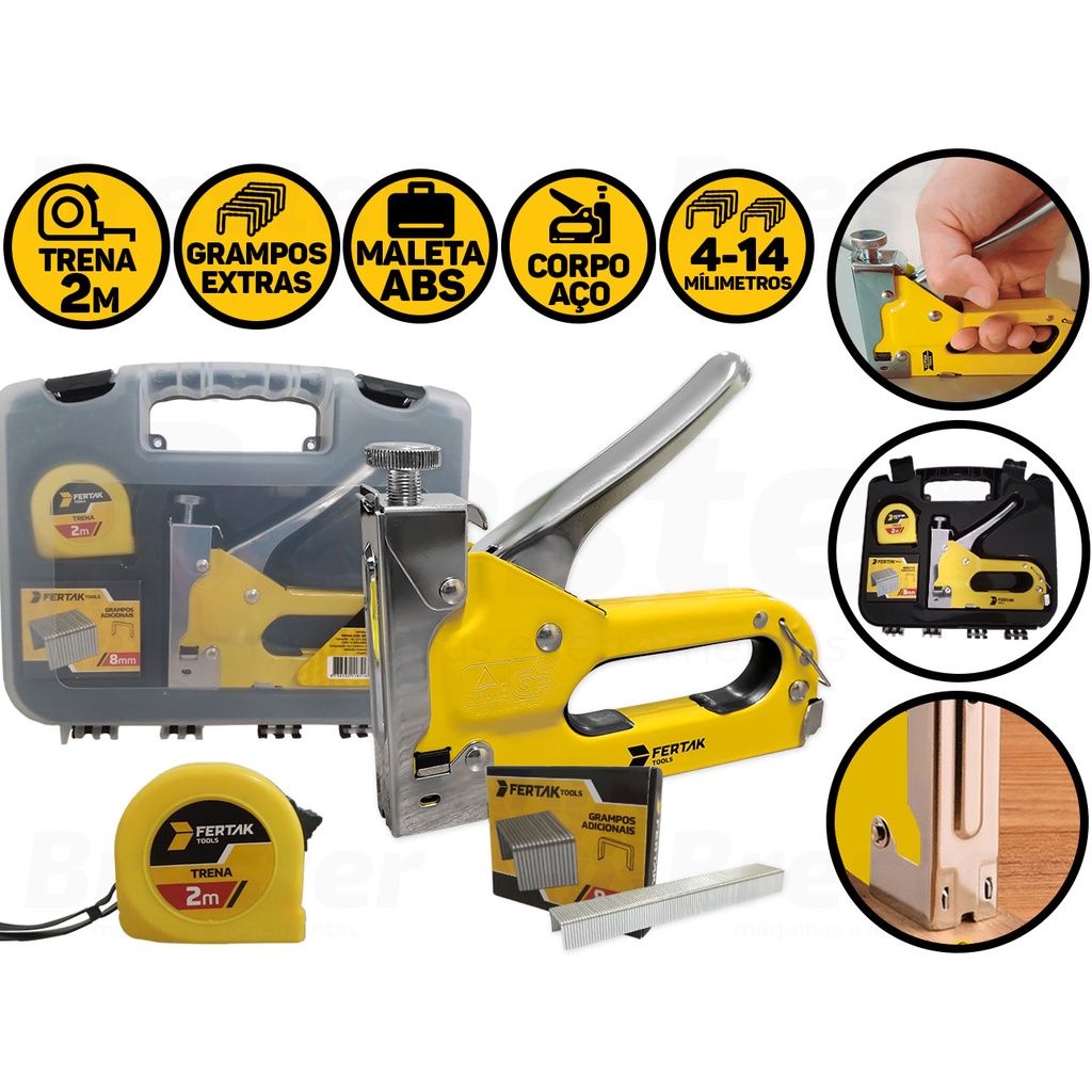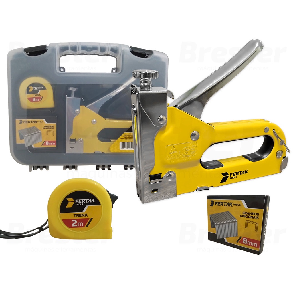 Grampeador Tapeçaria Manual C/ Maleta + Trena + 500 Grampos Fertak 8505