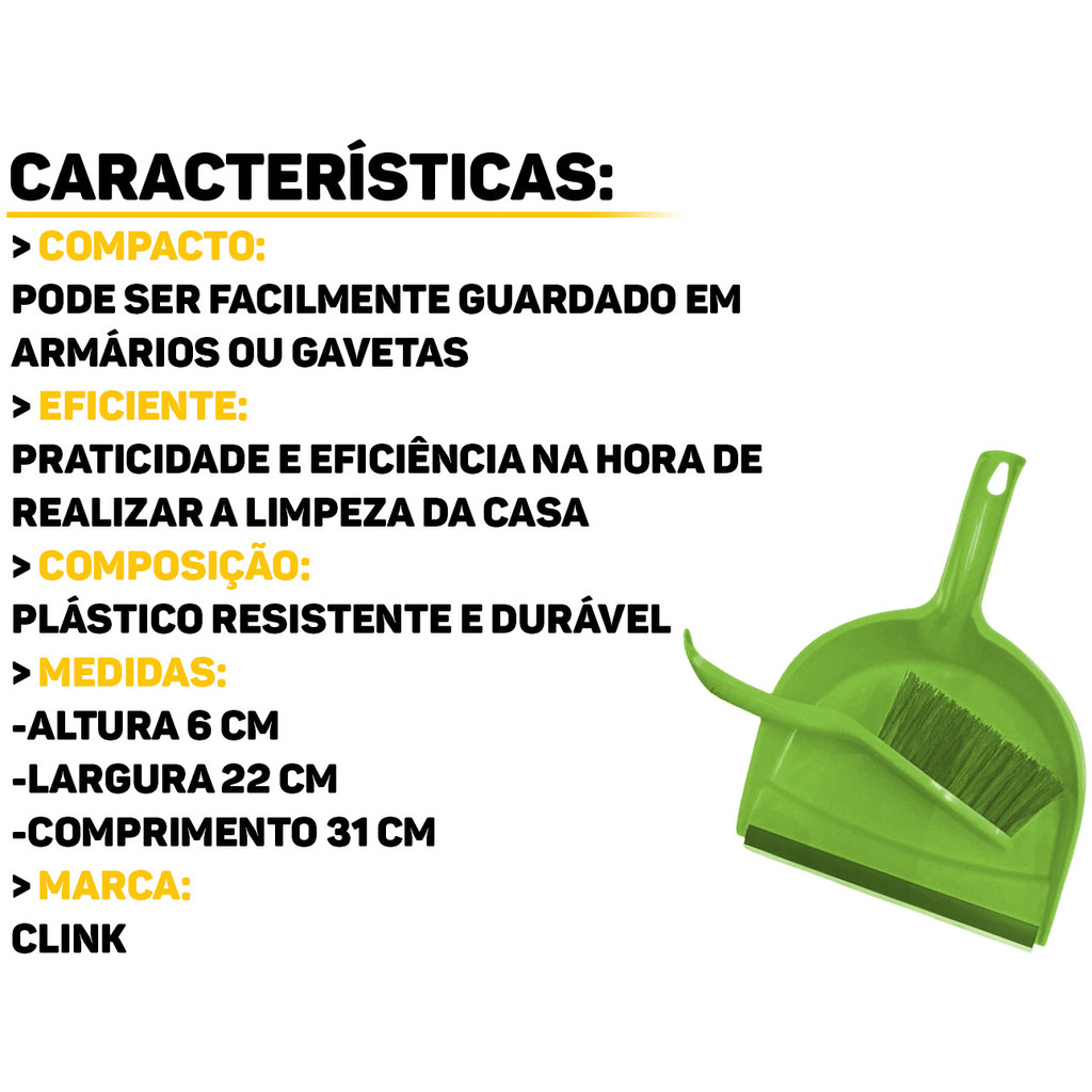 Conjunto Pazinha De Lixo Com Escova Vassourinha Plástica Para Limpeza Multiuso Clink