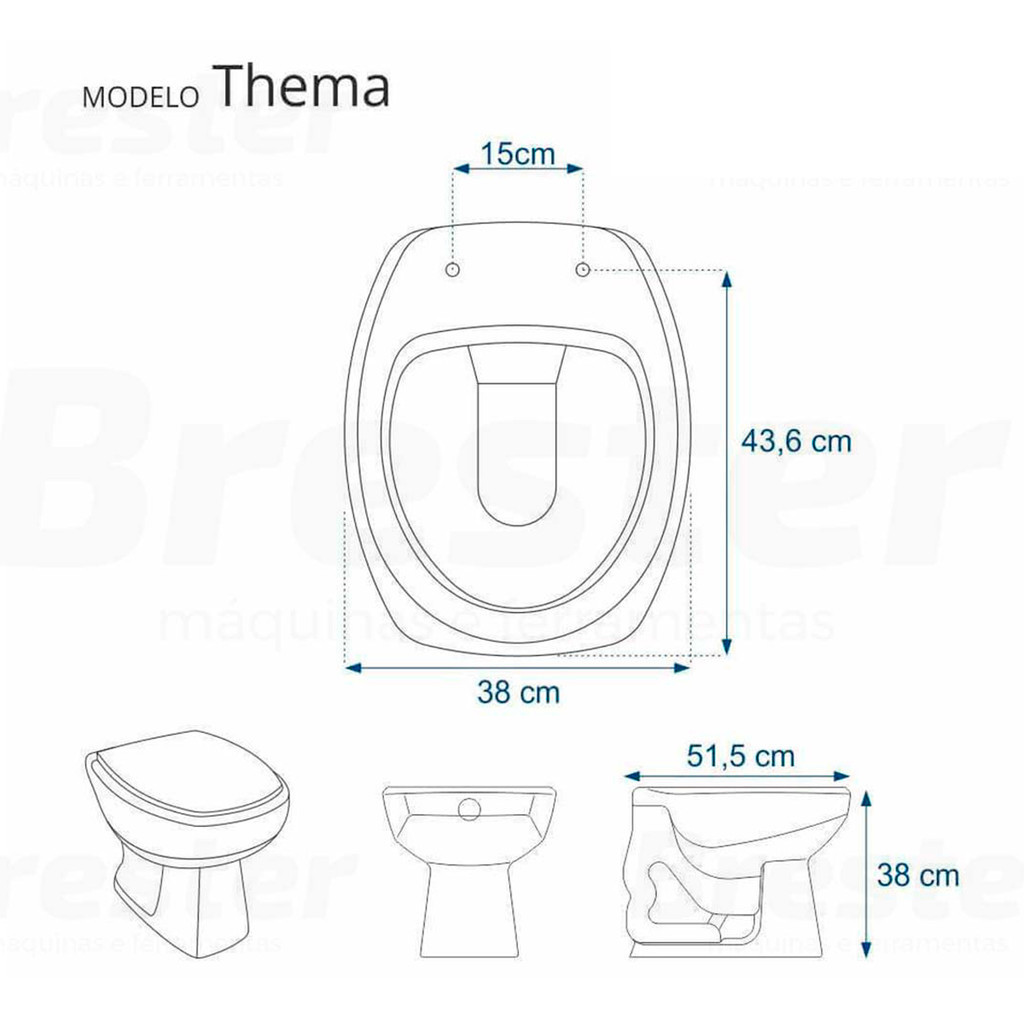 Assento Sanitário Thema Almofadado Herc Retangular Premium Compatível Primula Sabatini Anturius