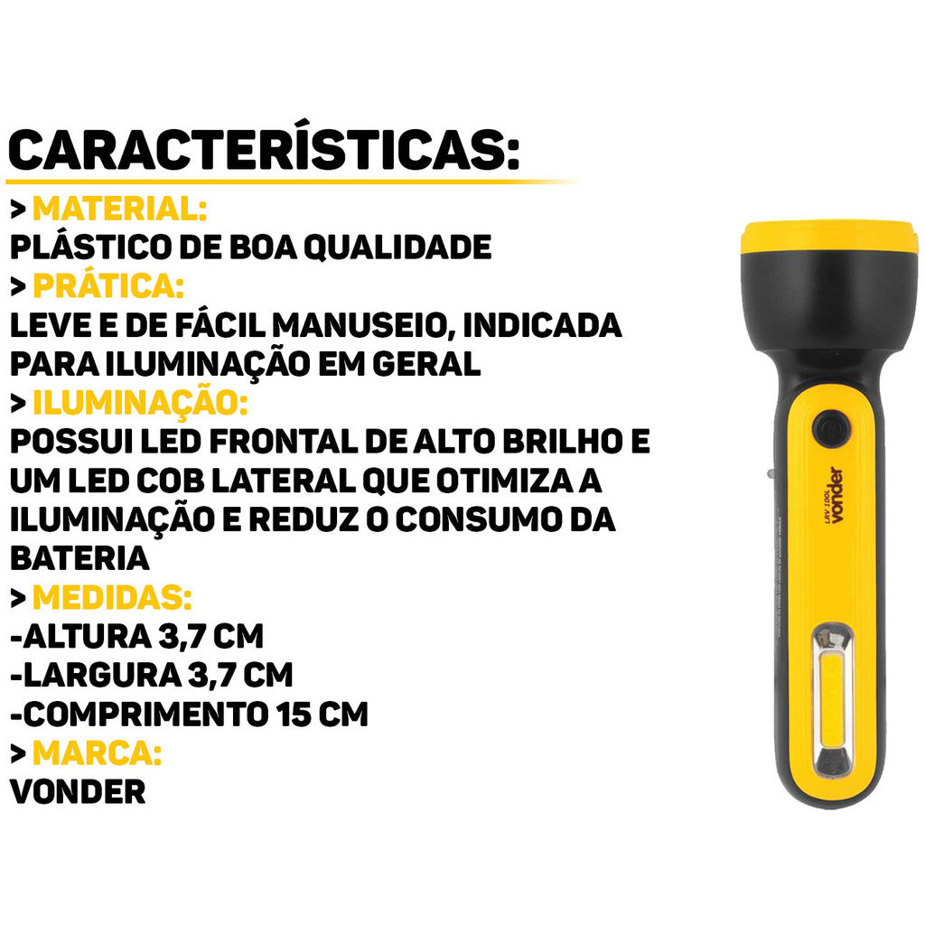 Lanterna Recarregável 80 / 100 Lúmens Bateria De Lítio Alcance De 200 Metros Recarregável Vonder