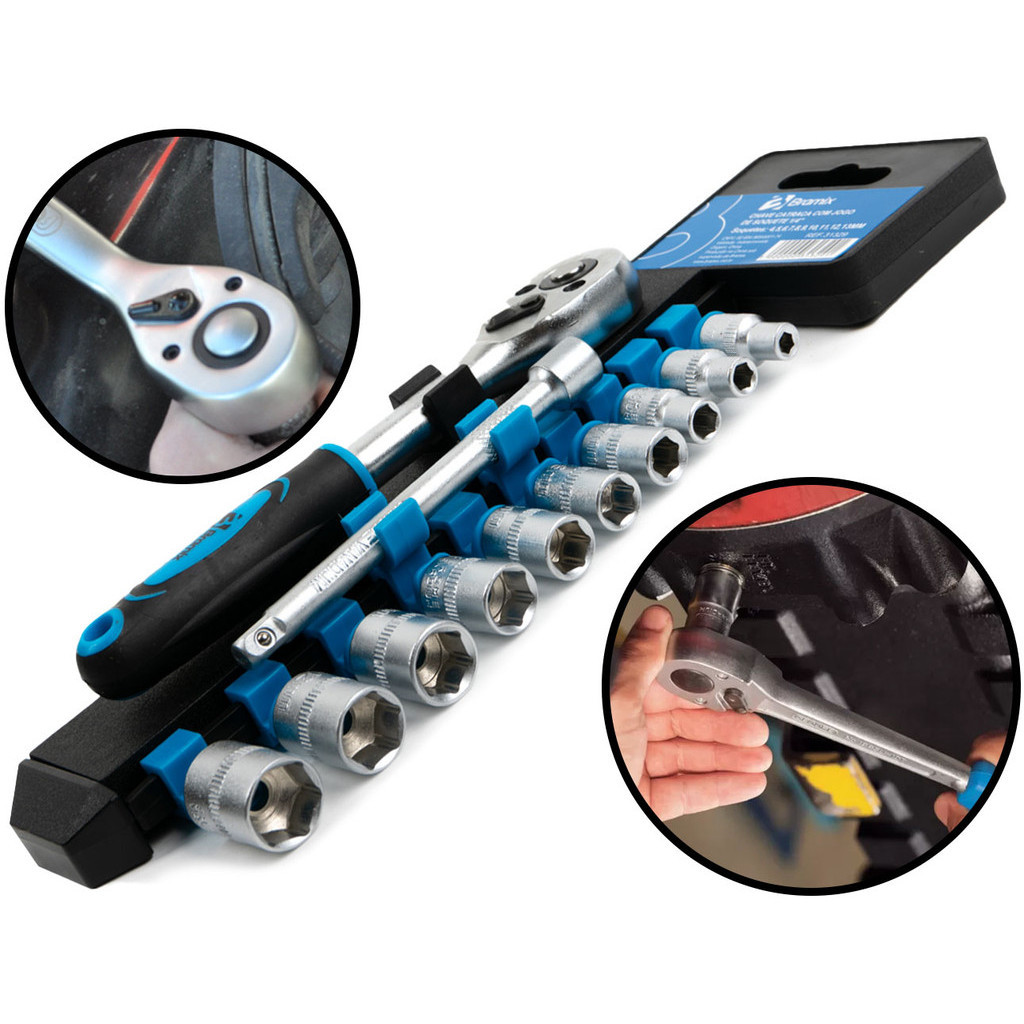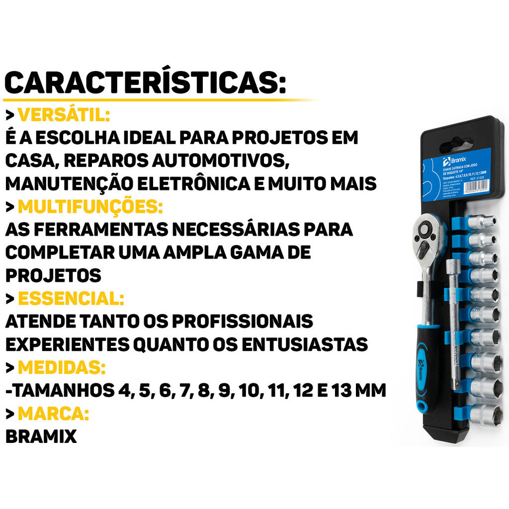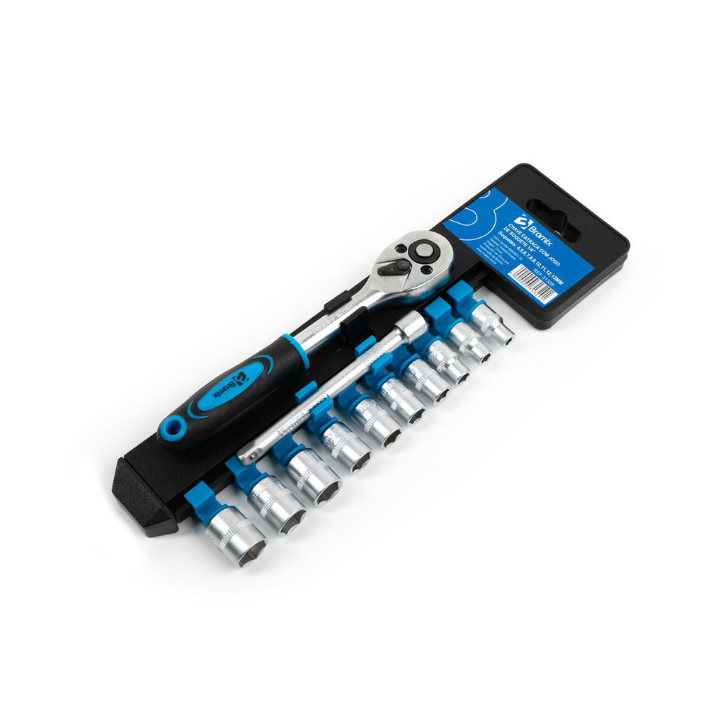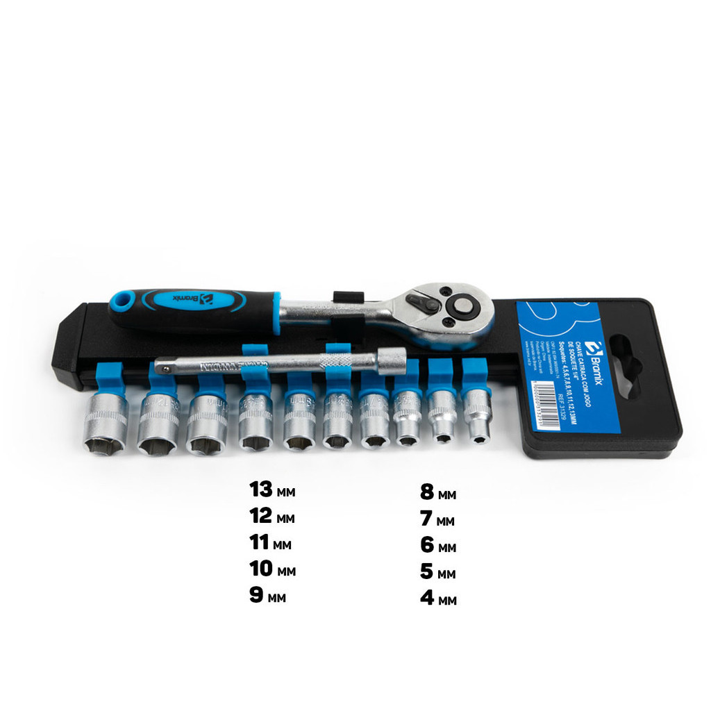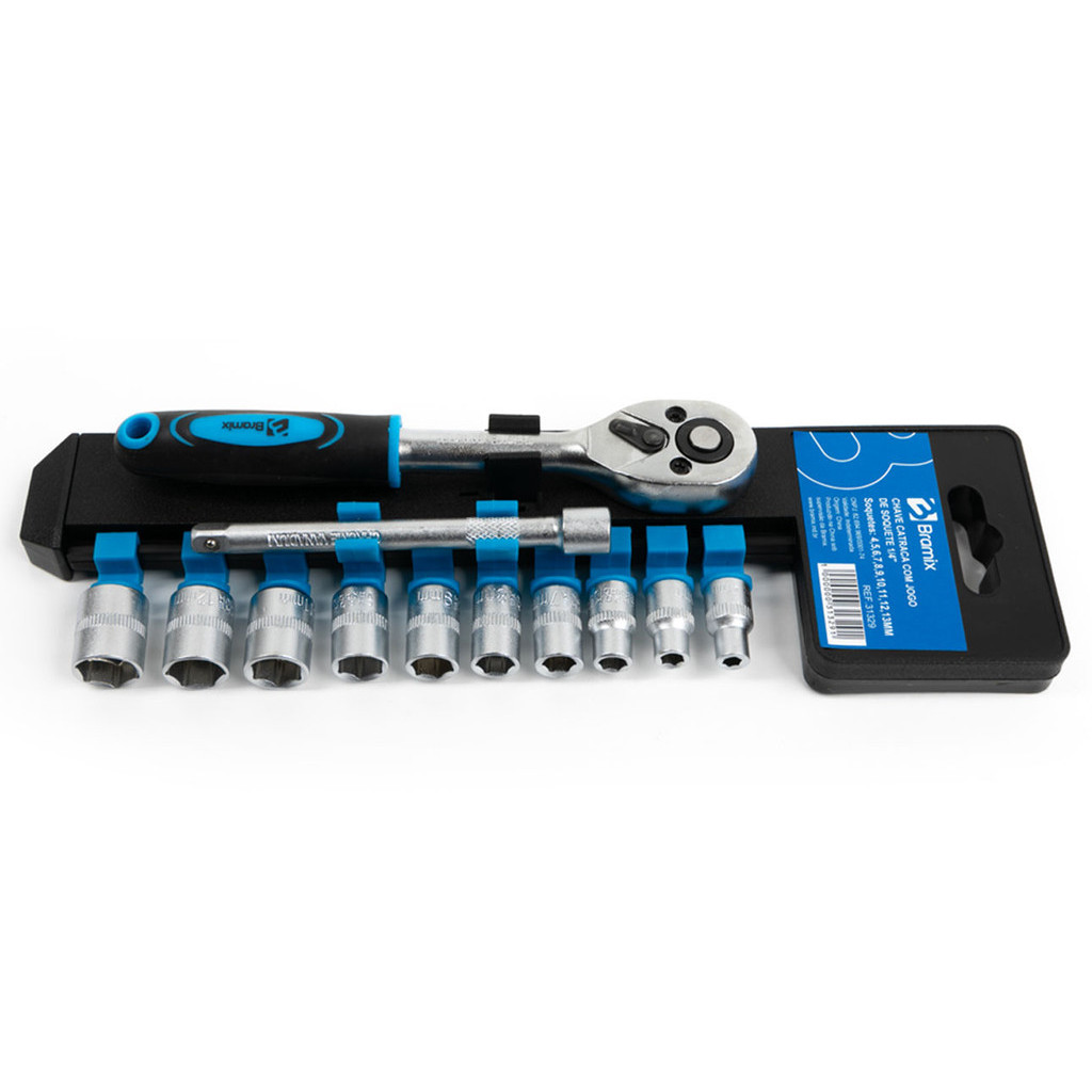 Chave Catraca Com Jogo De Soquetes Aço Cromo Vanádio 1/4 Polegadas 4 A 13mm Bramix