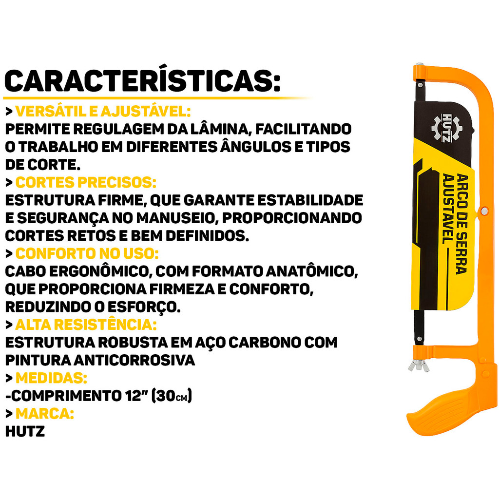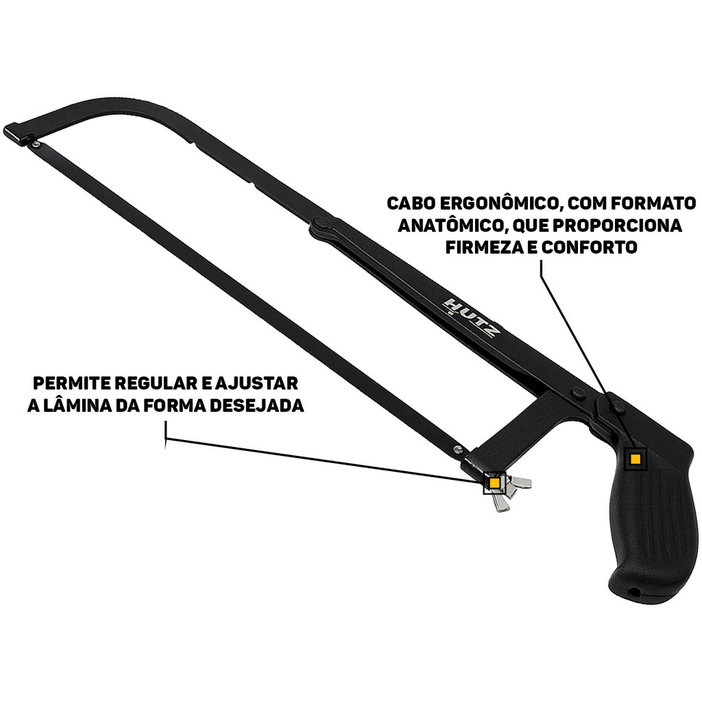 Arco De Serra Manual Lâmina Aço Carbono Ajustável Profissional 12 Polegadas Hutz
