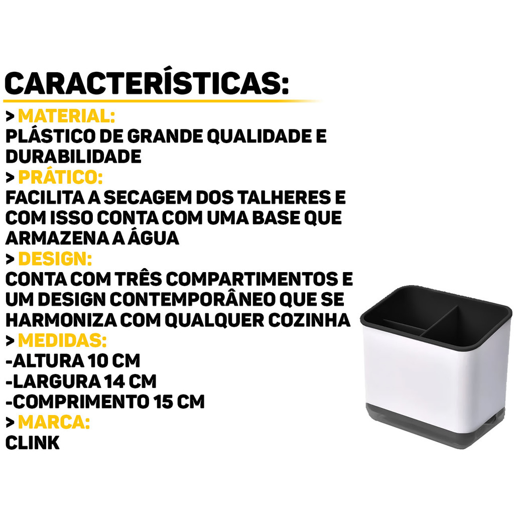Escorredor De Talheres Plástico Porta Talher Organizador De Bancada Com Divisória Clink