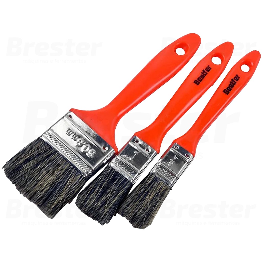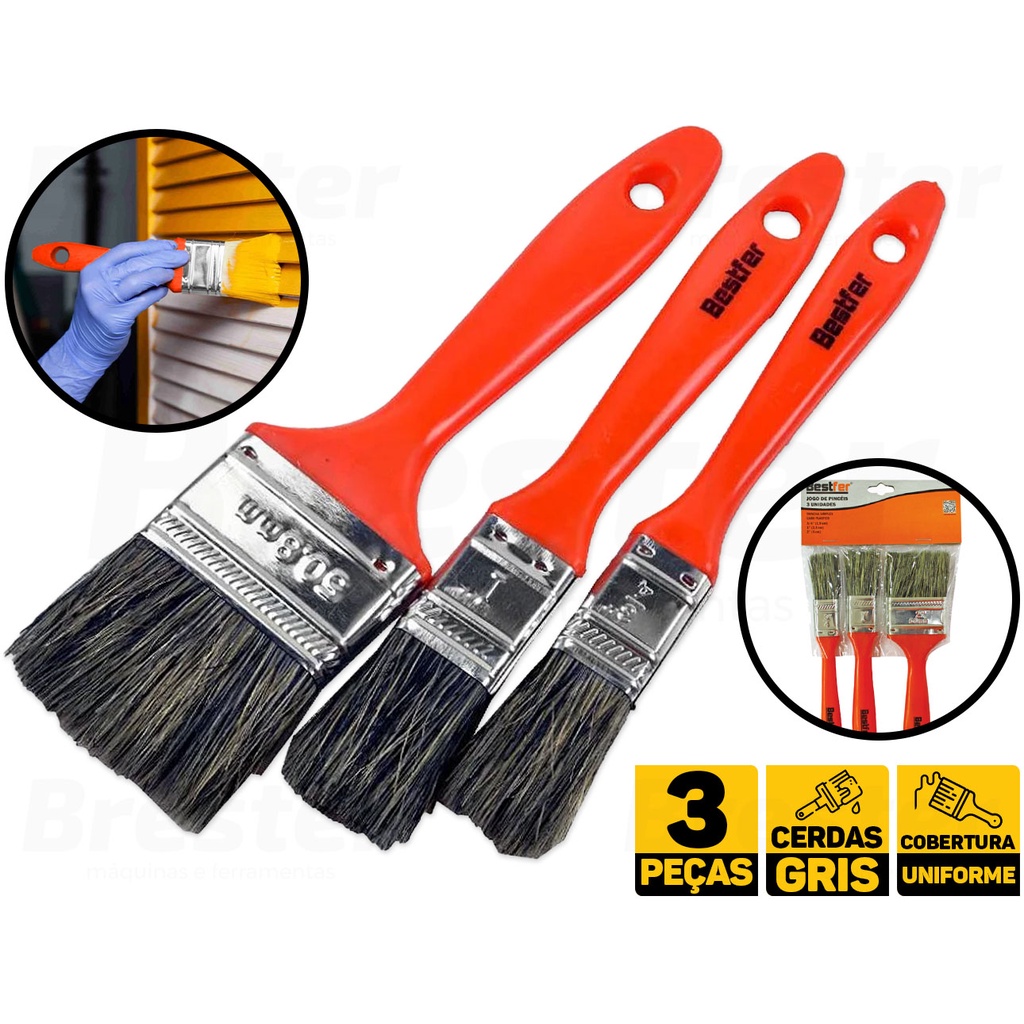 Jogo 3 Trincha Pincel Cerdas Gris Pintura Parede Cabo Laranja Bestfer BFH1266