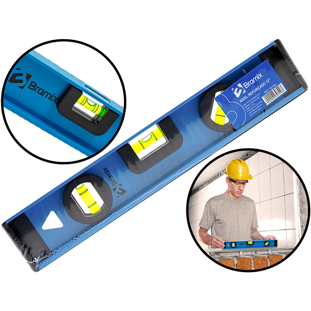 Nível De Alumínio 60cm Reforçado Com Base Magnética Três Bolhas Profissional 24 Polegadas Bramix