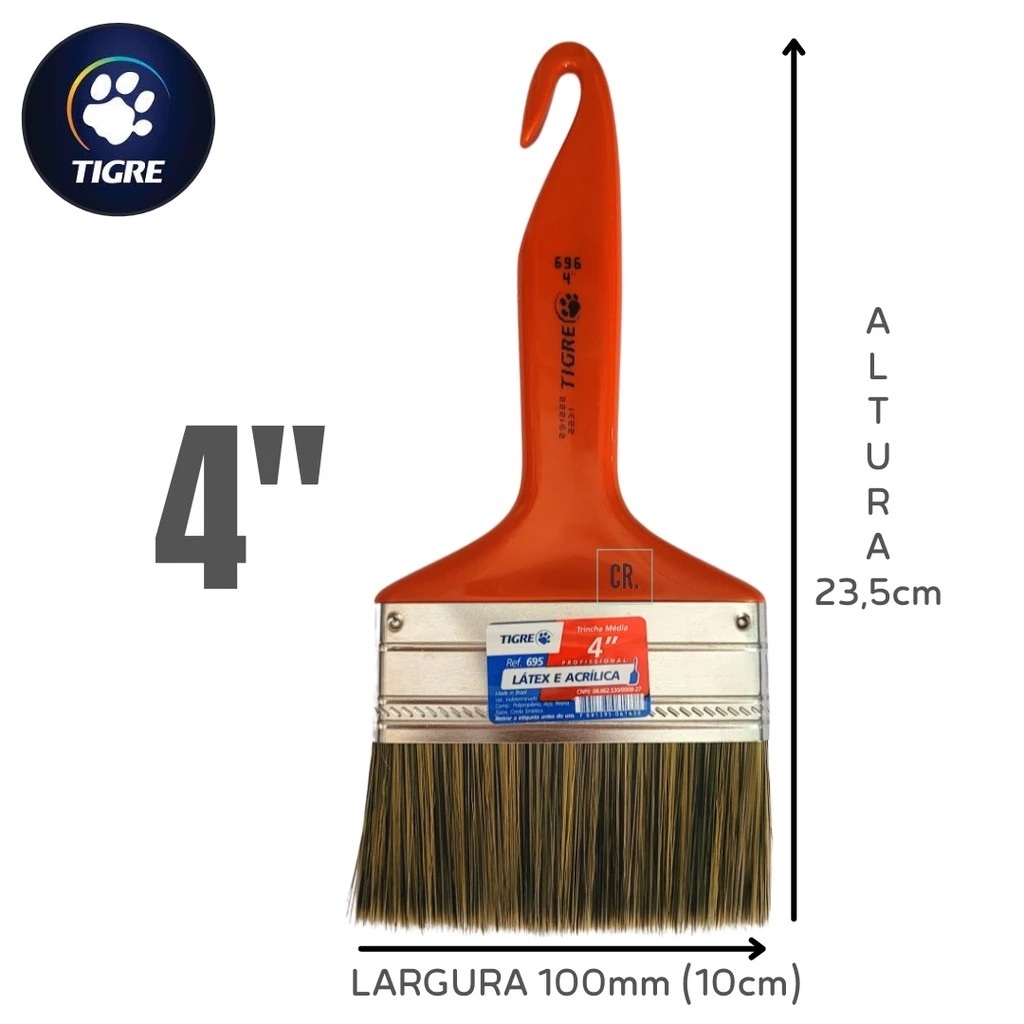 Pincel Trincha Tigre Para Pintura Com Tinta Látex e Acrílica Ref. 695 Pincel Para Pintar Paredes