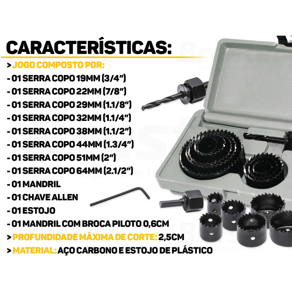 Jogo Serra Copo 11 Pçs Madeira Gesso Pvc Plástico 19 A 64mm