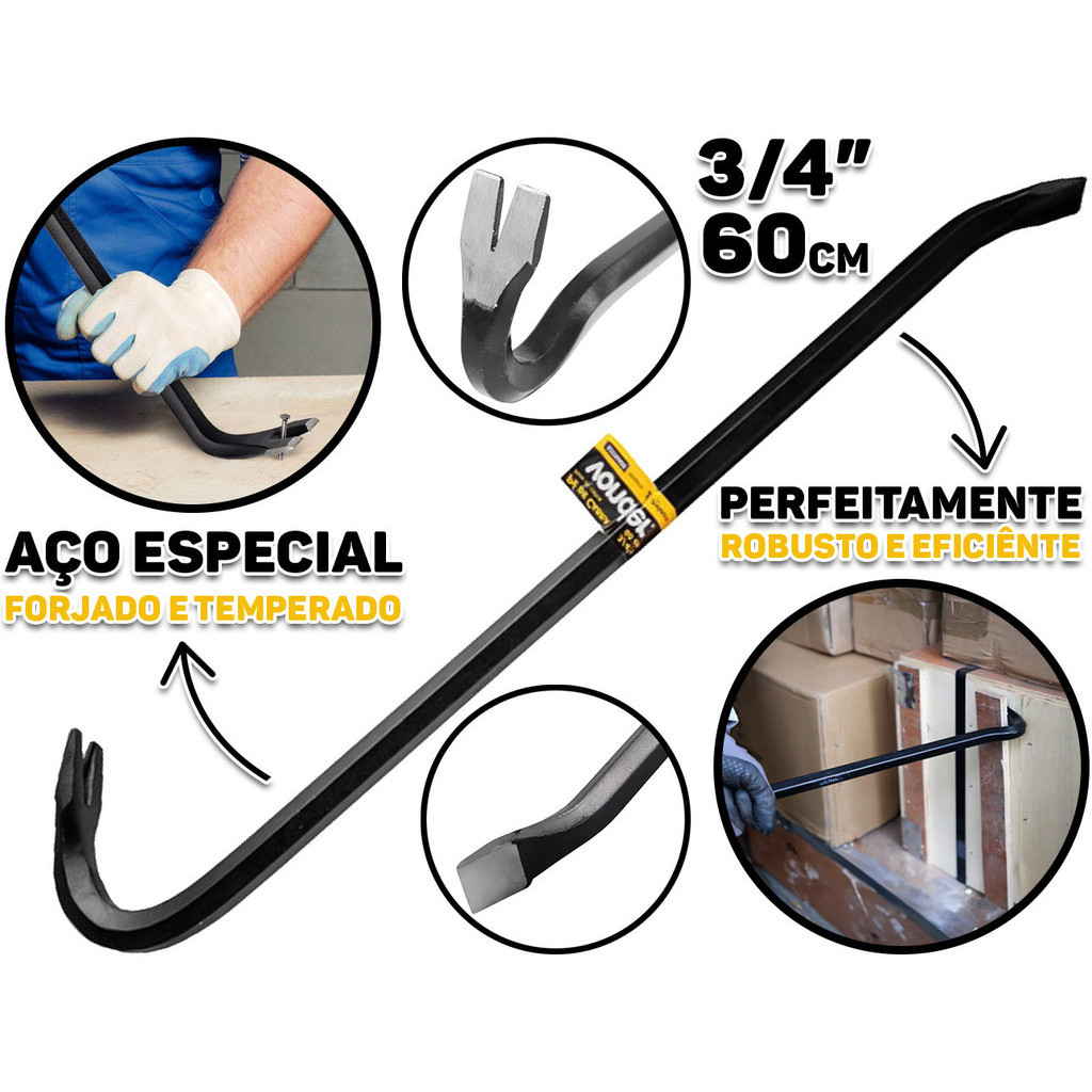 Pé De Cabra Duplo Sextavado 3/4 Polegadas Aço Forjado Para Abertura E Desmontagem 60cm Vonder