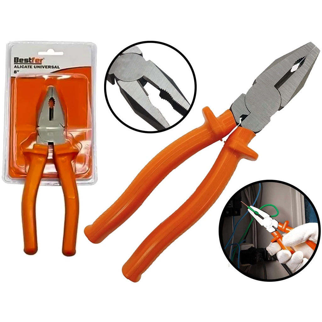 Alicate Universal Aço Polido 8 Polegadas Cabo Emborrachado Profissional Multiuso P/ Puxar Prender Cortar