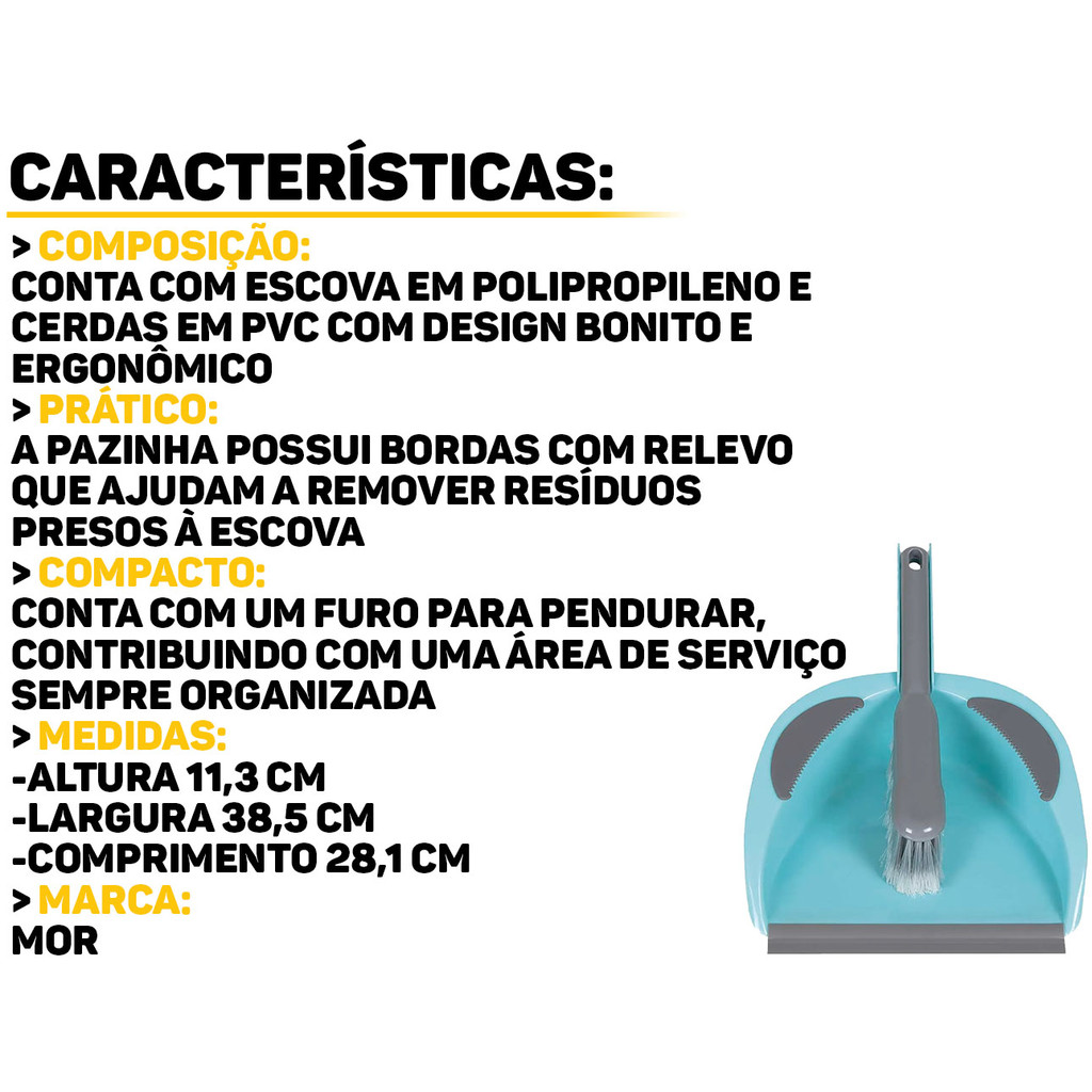 Conjunto Pá De Mão Plástica Com Escova Espanador Para Limpeza Multiuso 2 Peças Mor